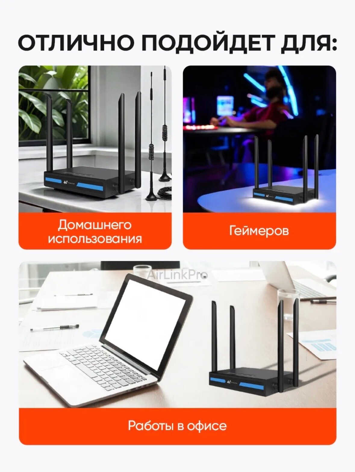 Металлический 4G Wi-Fi роутер с SIM-картой и дополнительными выносными (уличными) антеннами, cat.6, все операторы связи интересное: