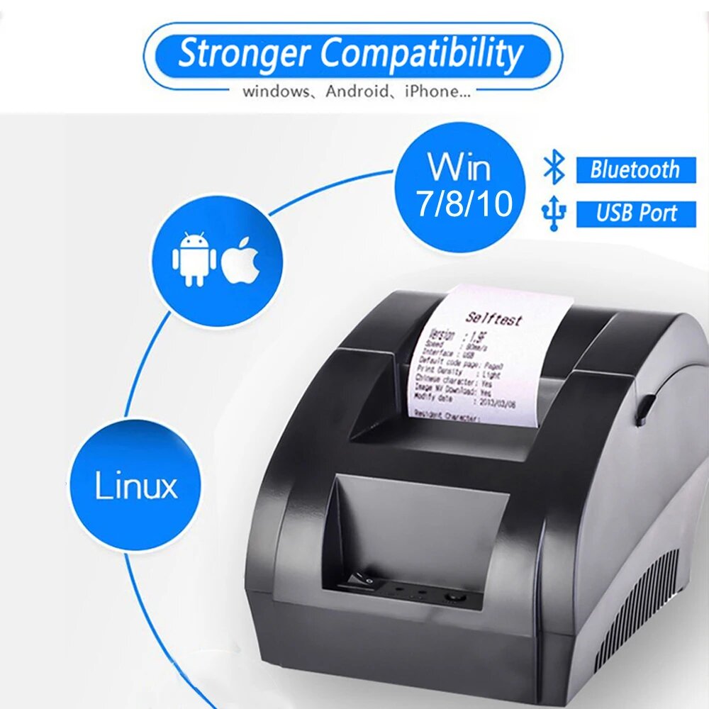 Чековый термопринтер 58 мм, POS-принтер, Bluetooth, USB, для Мобильный телефон, Android, iOS, Windows, для супермаркетов и магазинов