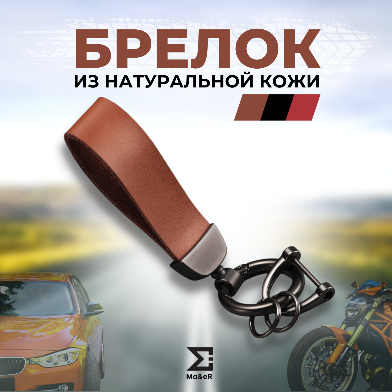 Брелок для ключей автомобиля и мотоцикла из натуральной кожи