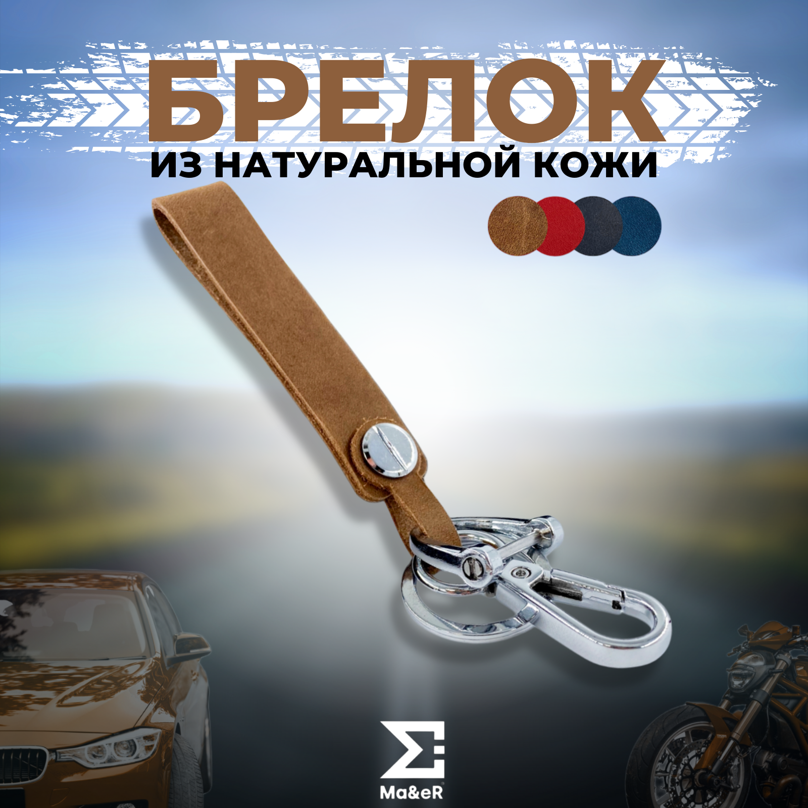 Брелок для ключей автомобиля и мотоцикла из натуральной кожи