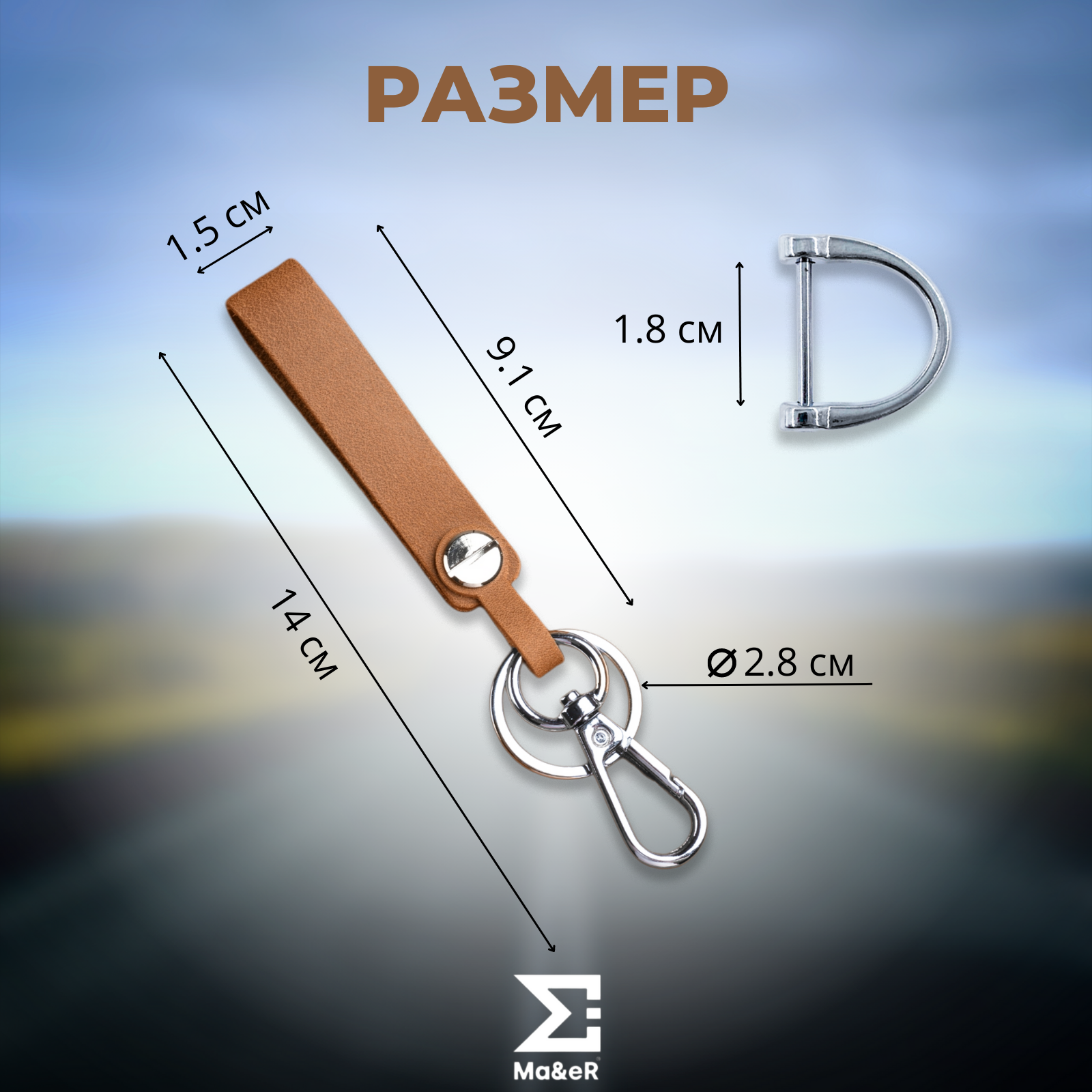 Брелок Ma&eR, гладкая фактура, светло-коричневый