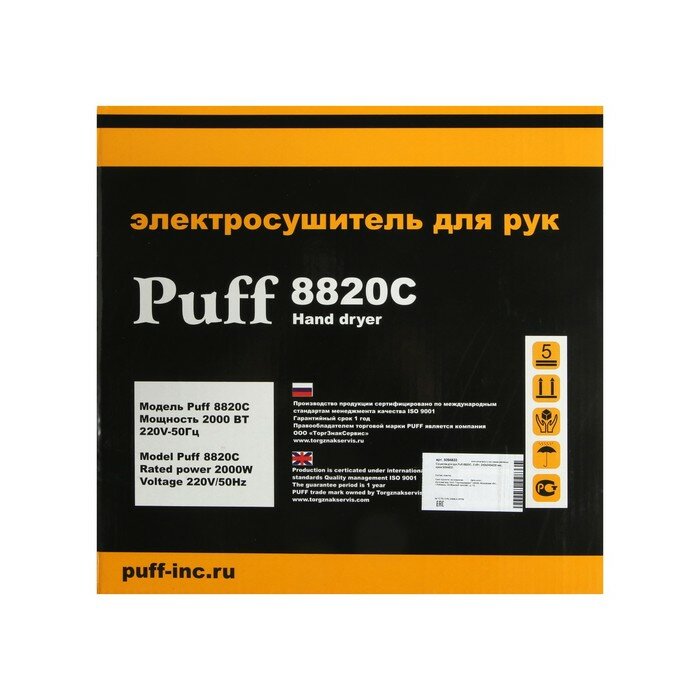 Сушилка для рук Puff-8820С, 2 кВт, 240х240х230 мм, хром Puff 5094833 .