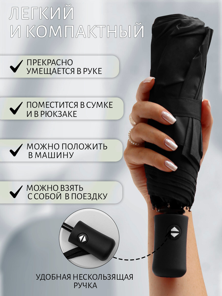 Зонт Автоматический Складной (черный) / полный автомат, антиветер, маленький, карманный, женский в сумочку, мужской