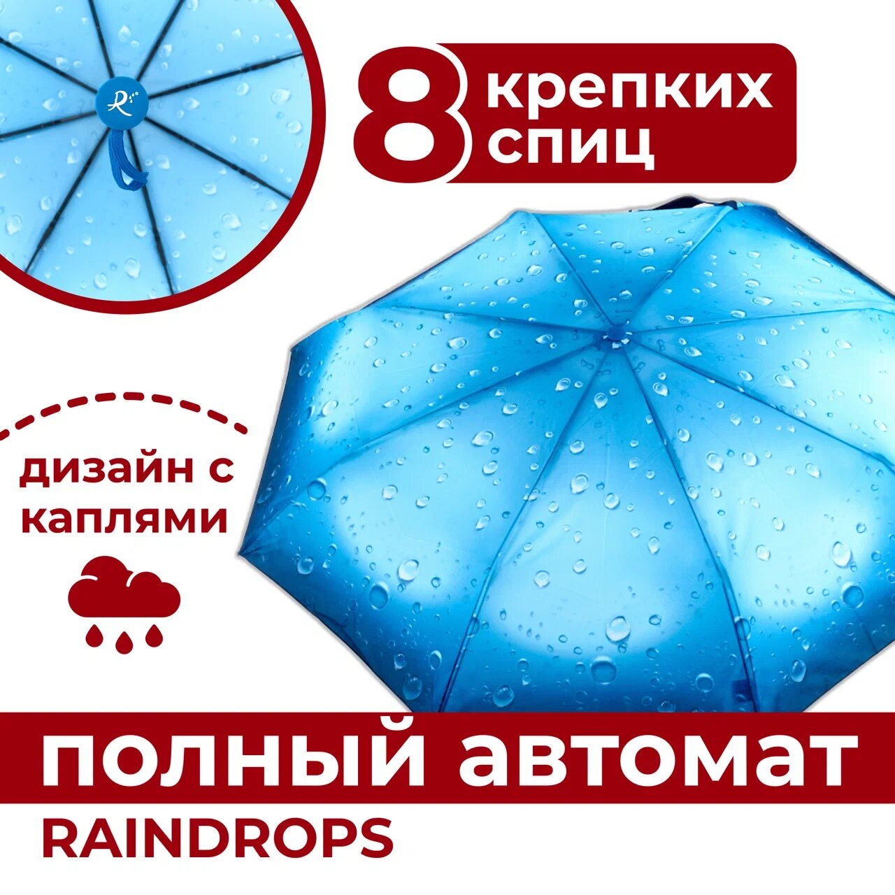 Зонт RAINDROPS, синий, голубой, белый интересное: