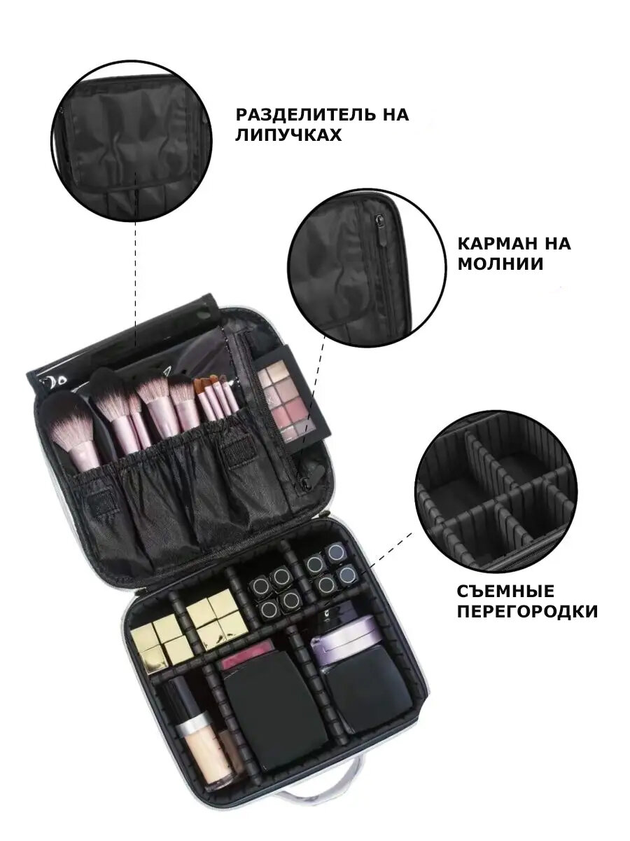 Кейс Tartiso для лэшмейкеров и визажистов 26х23х10 см Мрамор чёрный
