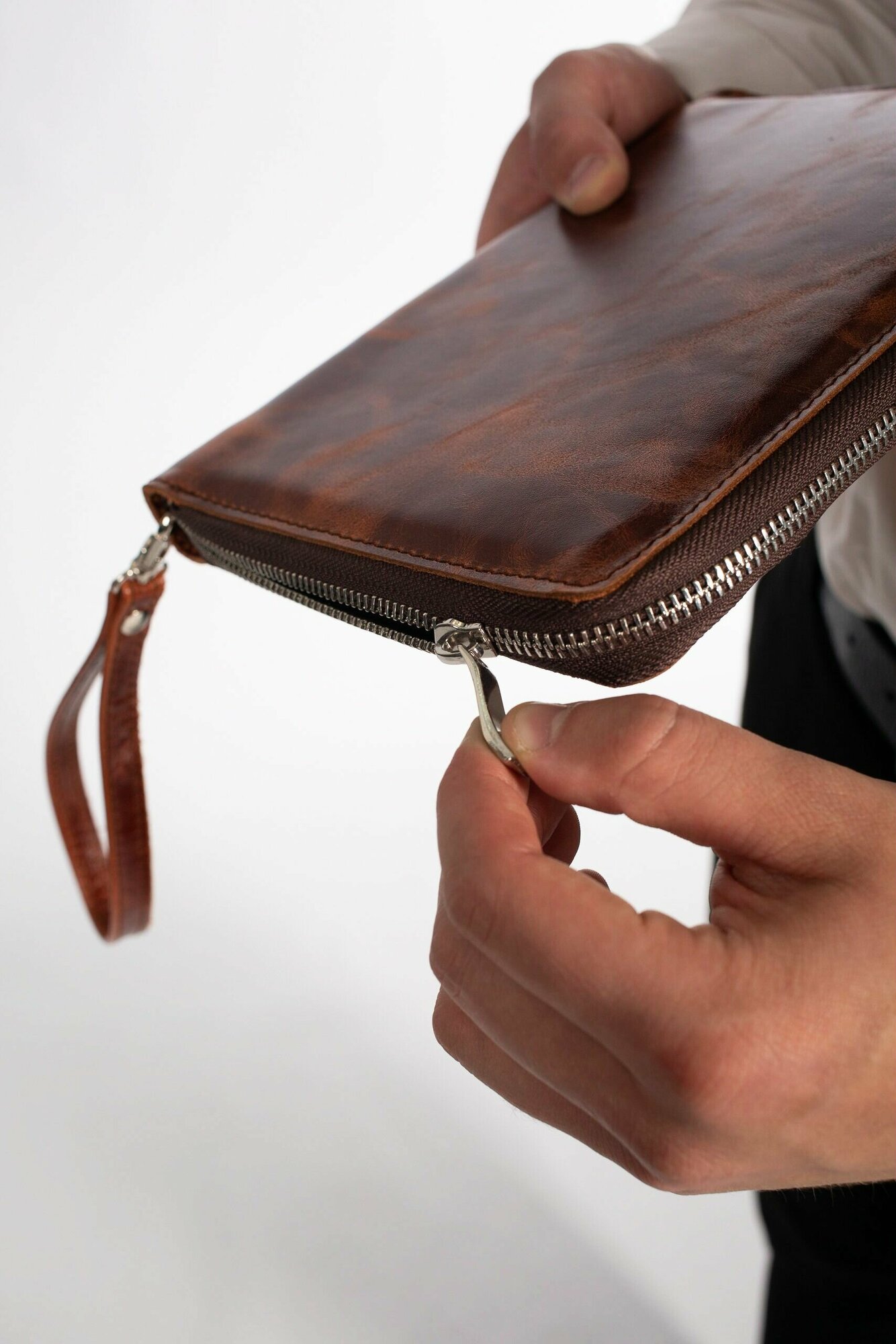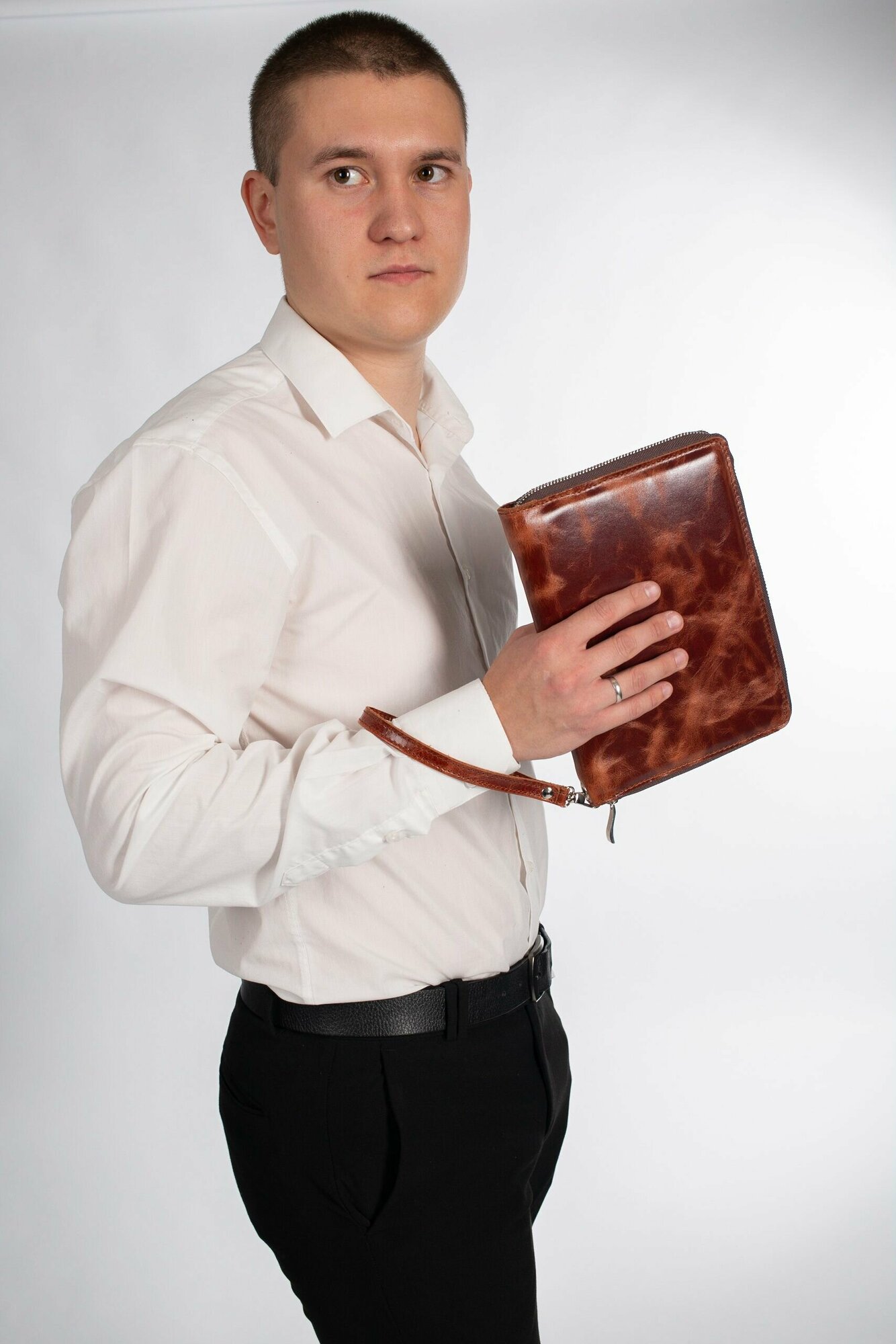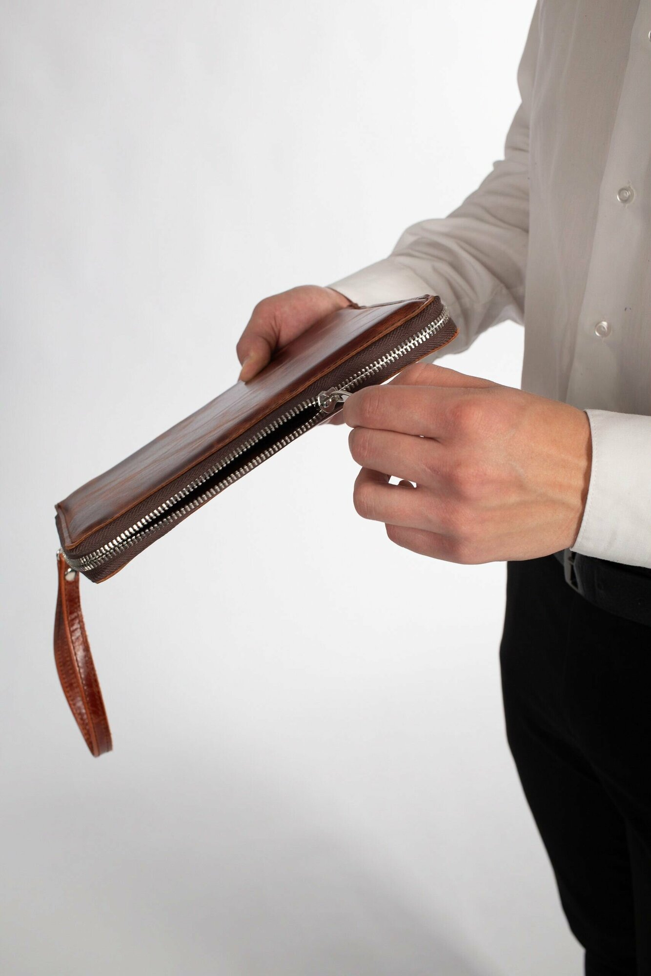 Папка-сумка из натуральной кожи А5 на молнии цвет коричневый