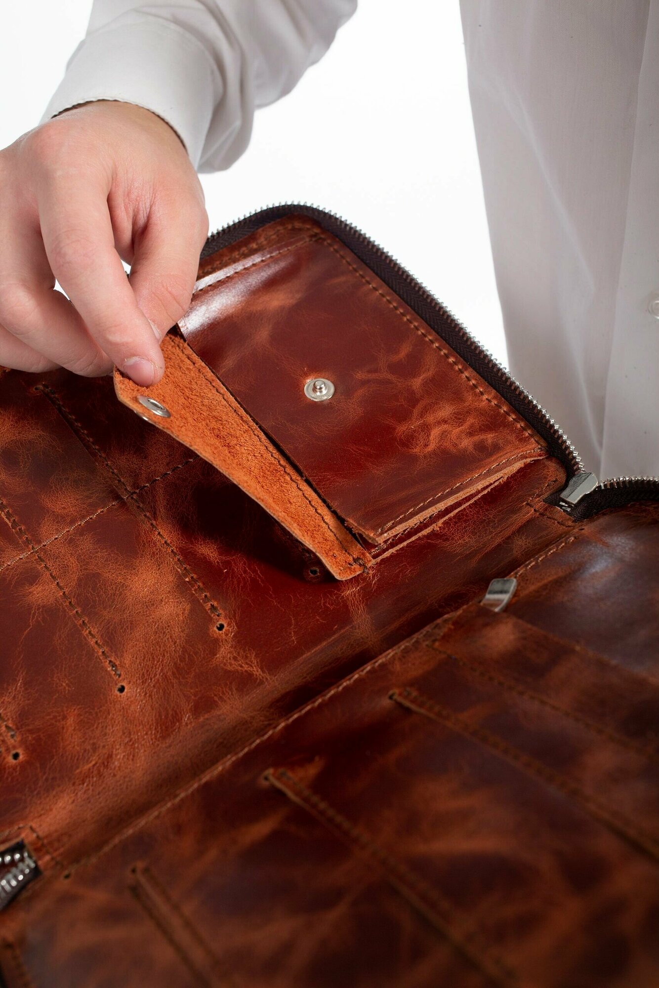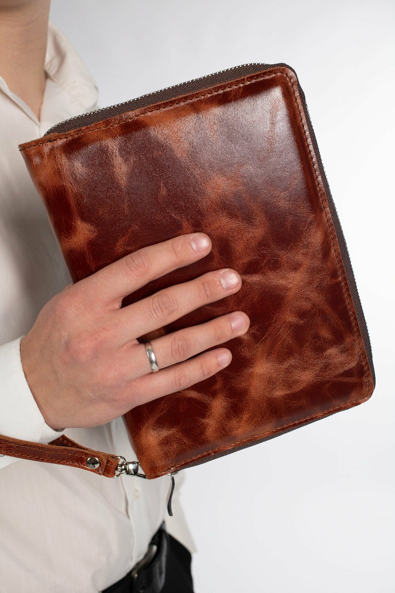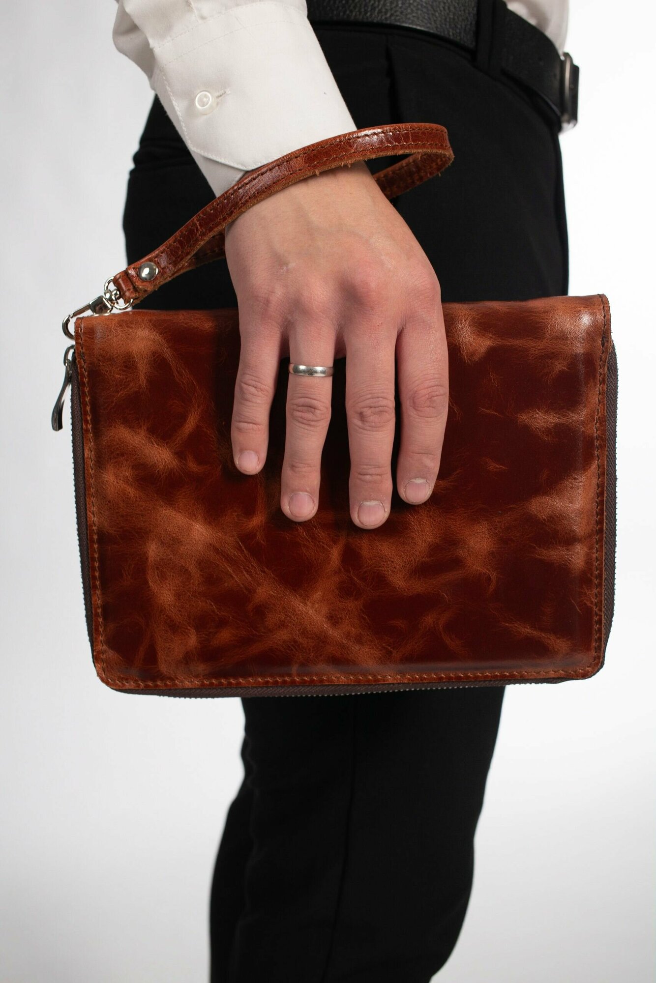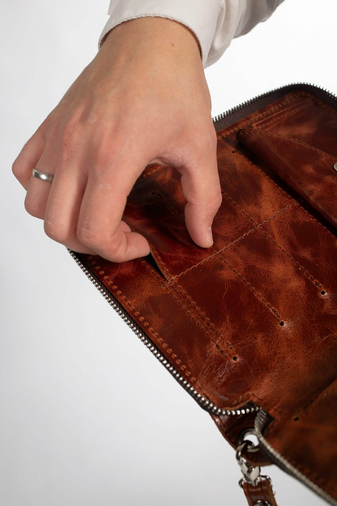 Папка-сумка из натуральной кожи А5 на молнии цвет коричневый