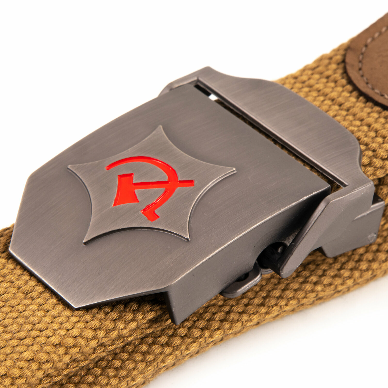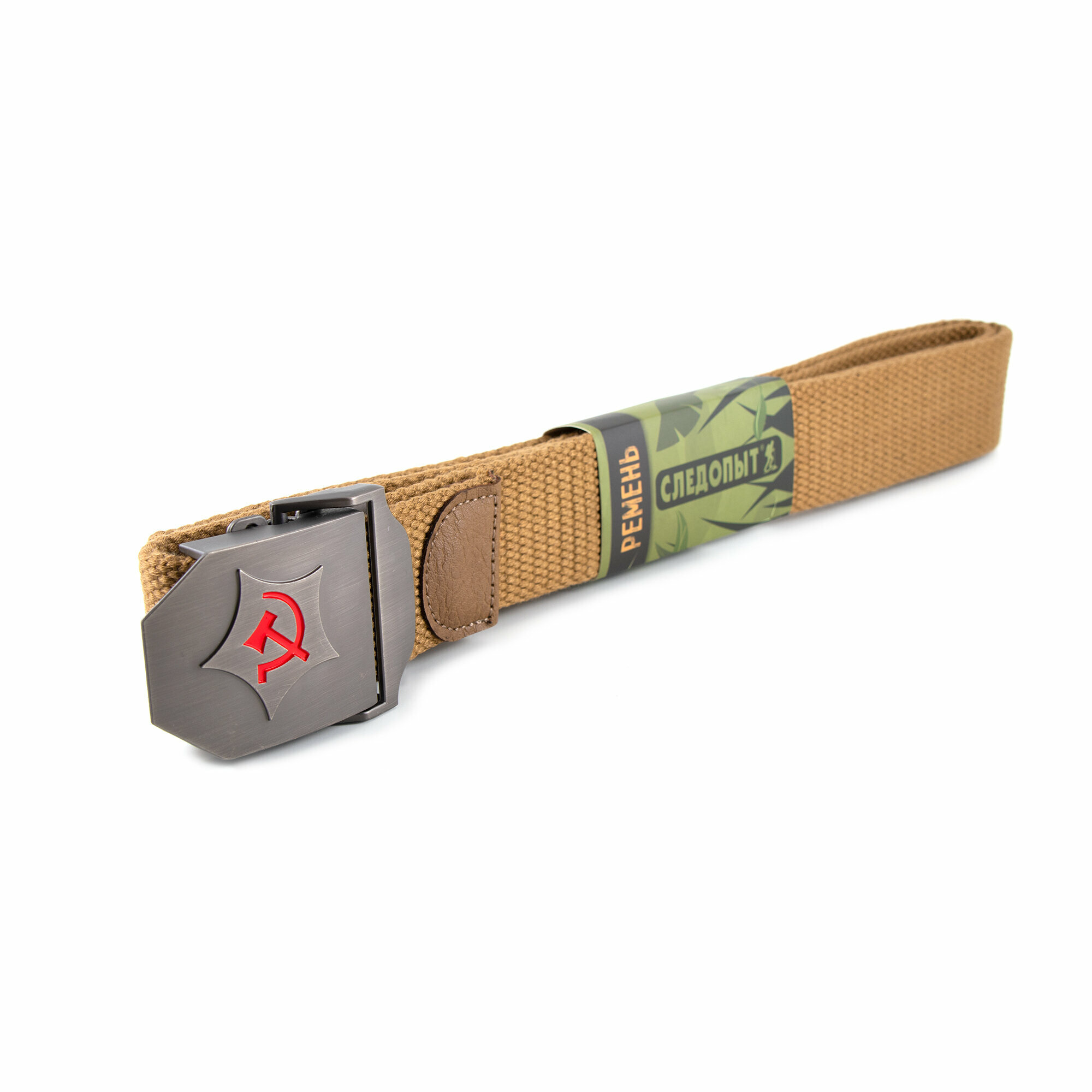 Ремень СЛЕДОПЫТ для мужчин, размер 140, Коричневый/Звезда Серп и Молот