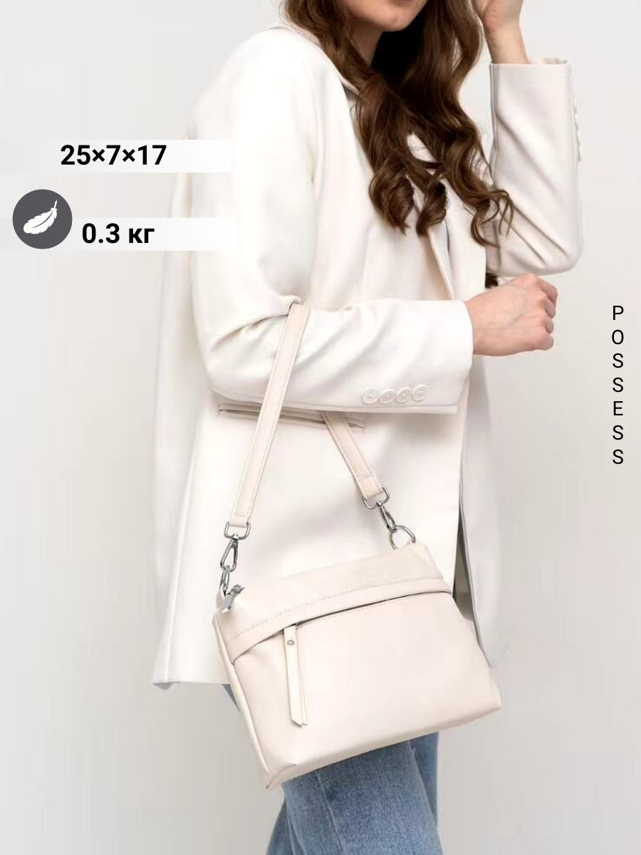 Сумка кросс-боди POSSESS, фактура бархатистая, белый