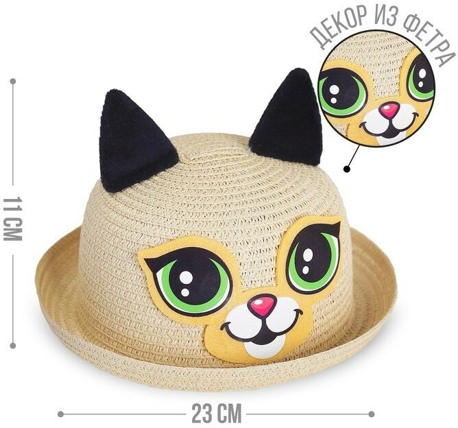 Панама с ушками «Котик», детская, р-р. 52-54 см, от 2 до 6 лет