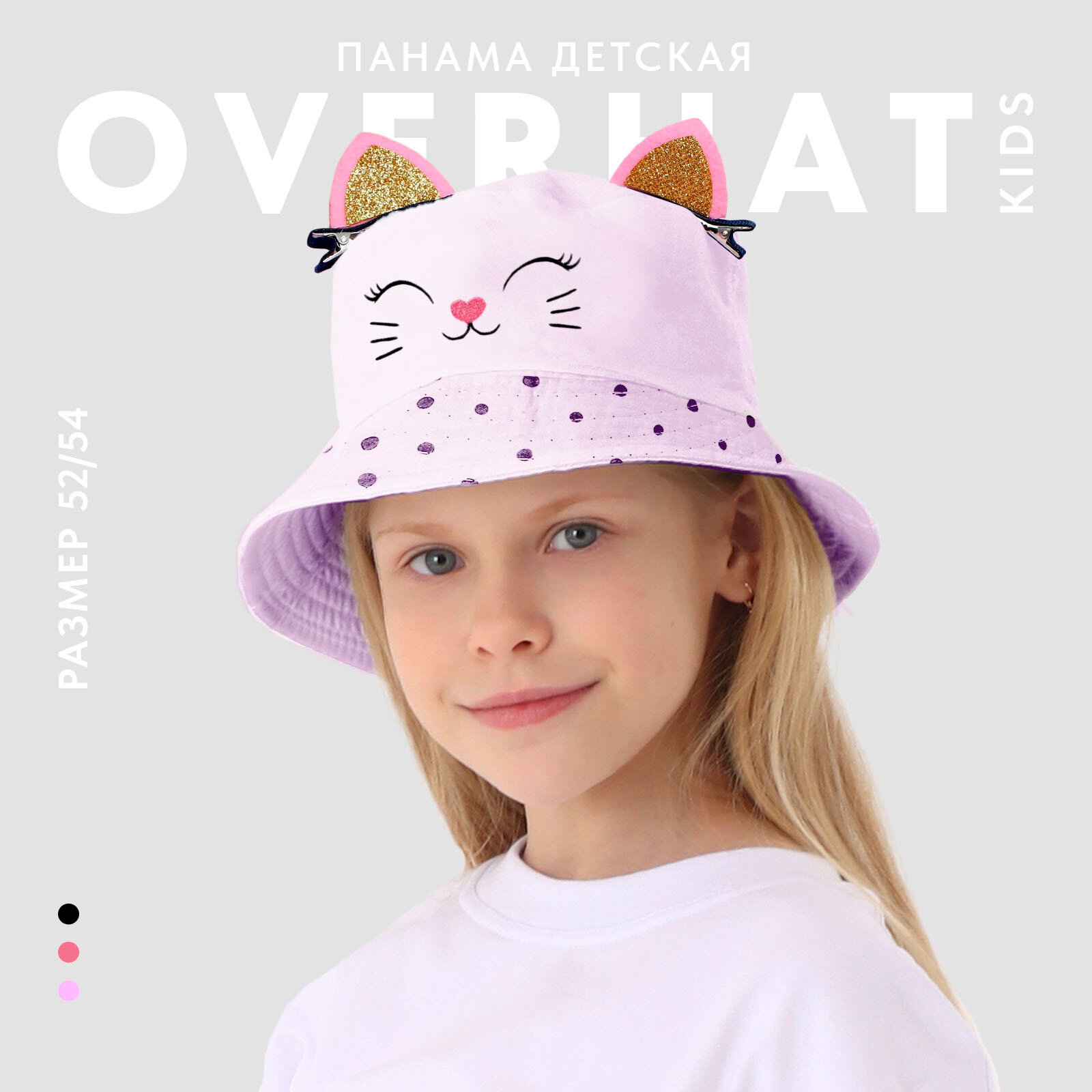 Панама Overhat "Пандочка" для девочек, размер 50/52, розовая