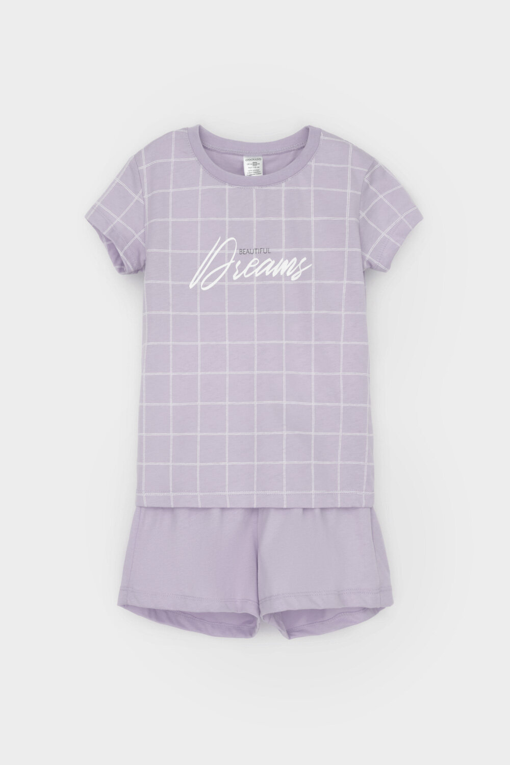 Комплект пижамы для девочки, Crockid К 1642/дымчатая роза,двойная клетка р 76/146