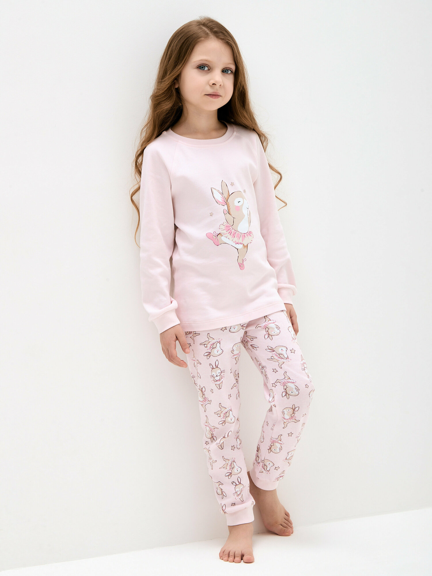 Пижама для девочки,KOGANKIDS,пудровый набивка зайчики, 122 / 7 лет