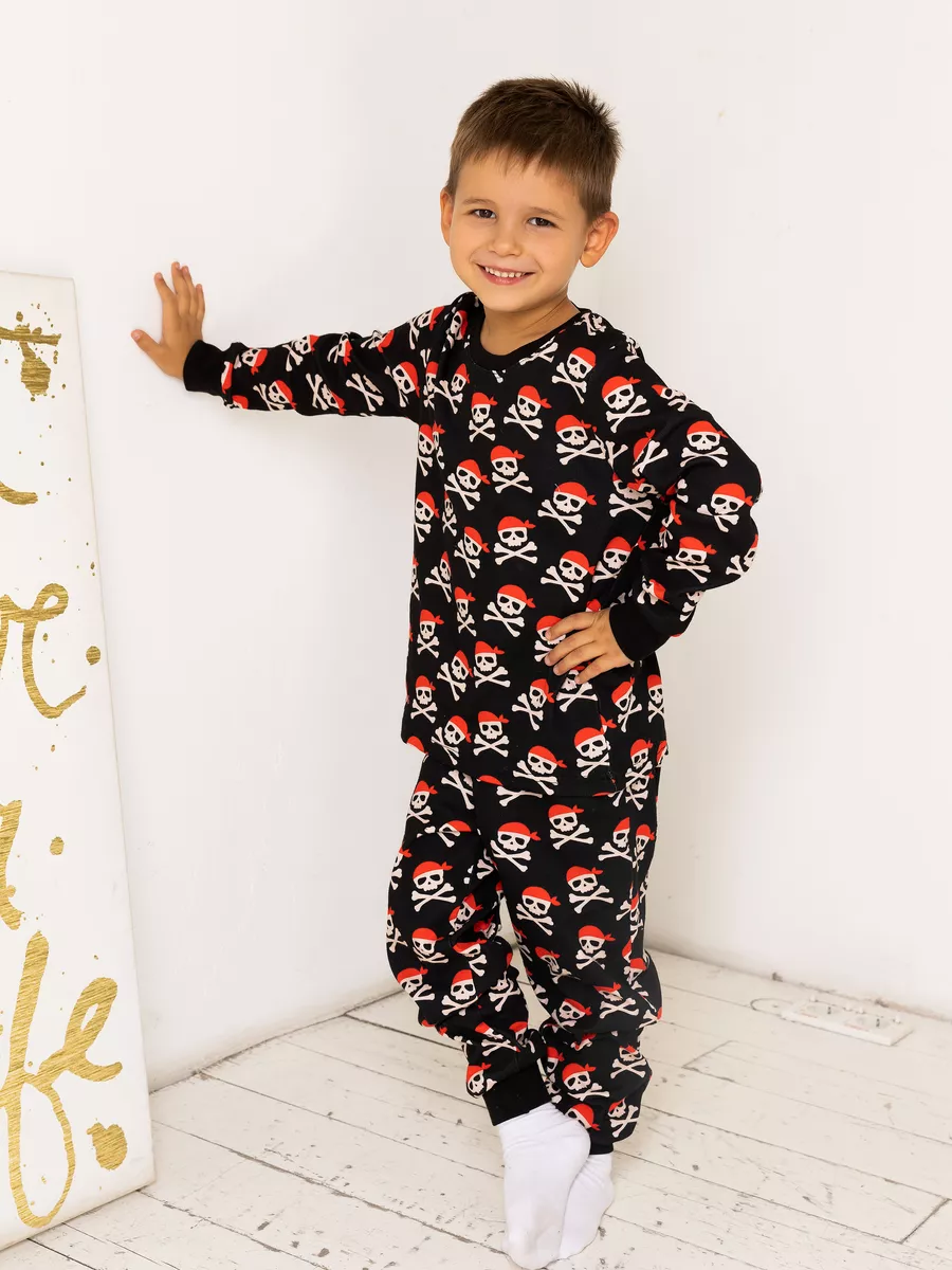 Пижама теплая для девочки, для мальчика Пираты, размер 128