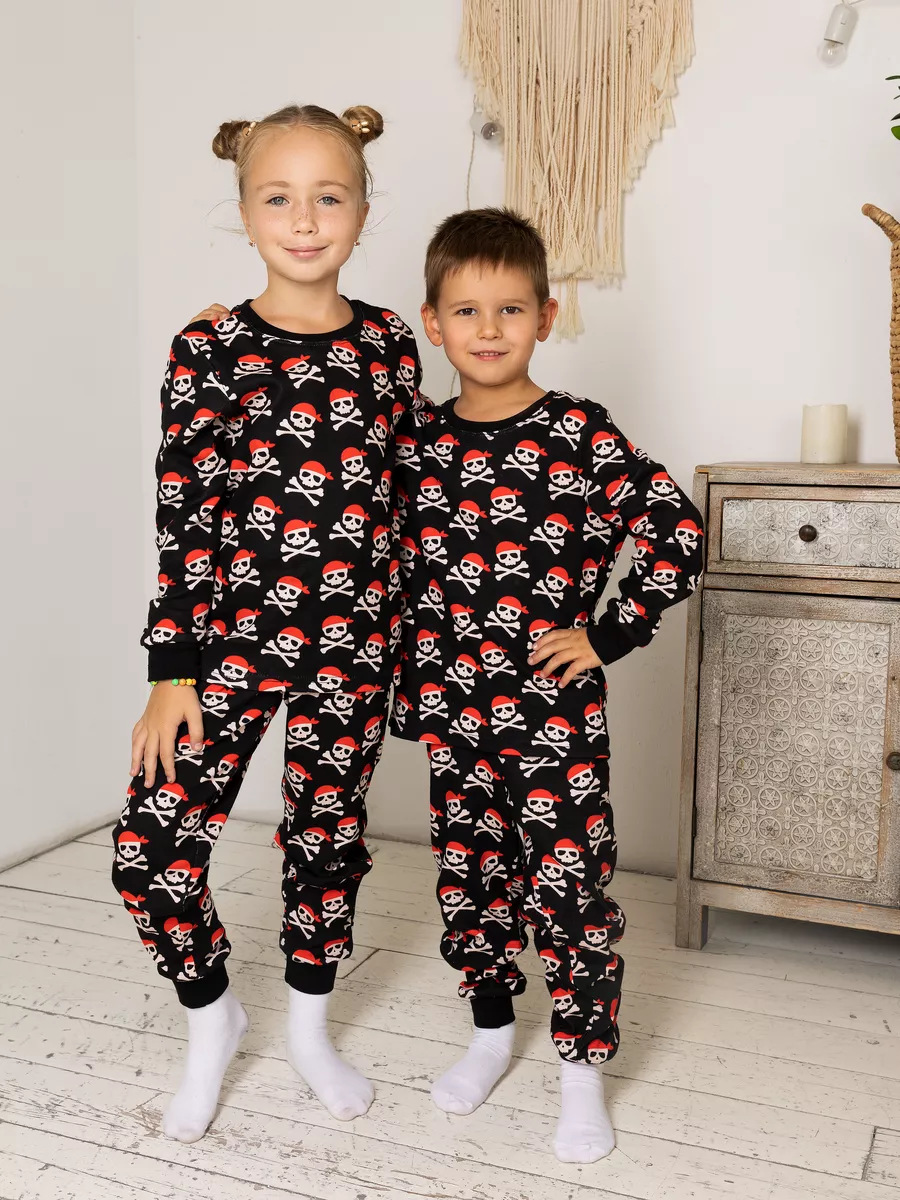 Пижама теплая для девочки, для мальчика Пираты, размер 146
