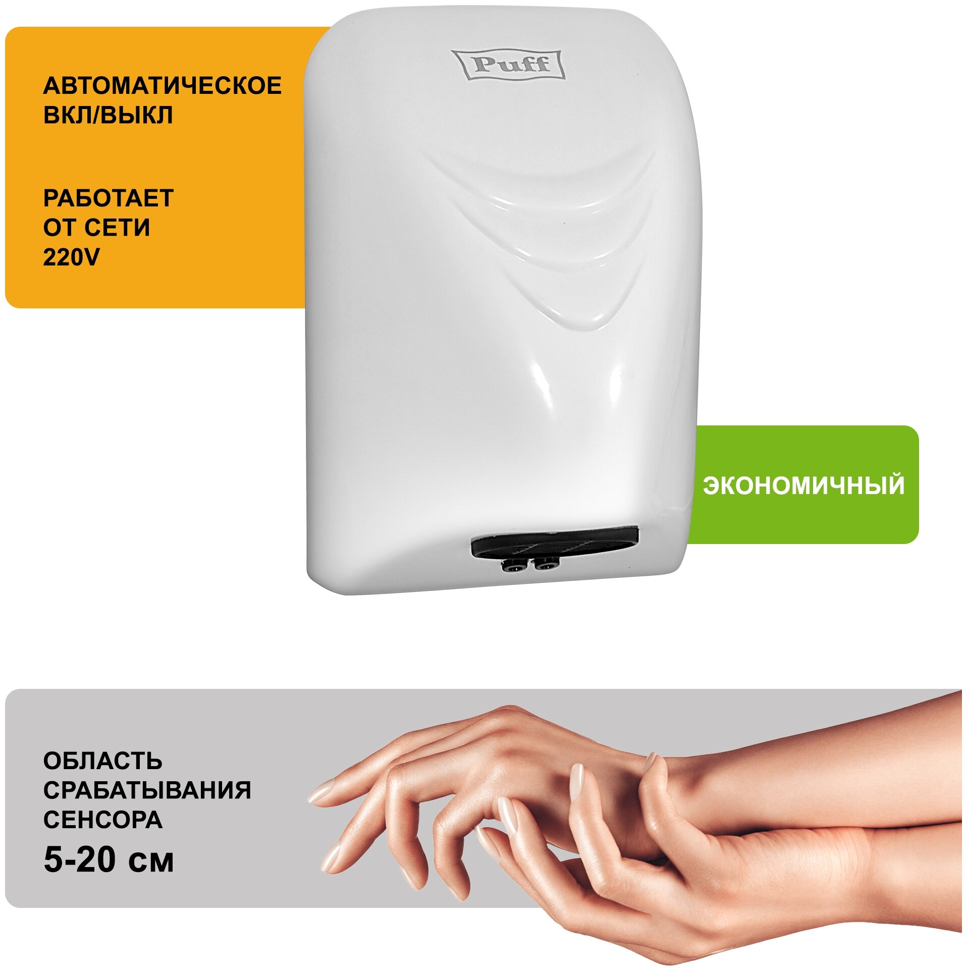 Сушилка для рук PUFF-8814, 800 Вт, пластик, белая, 1401.321, 601418