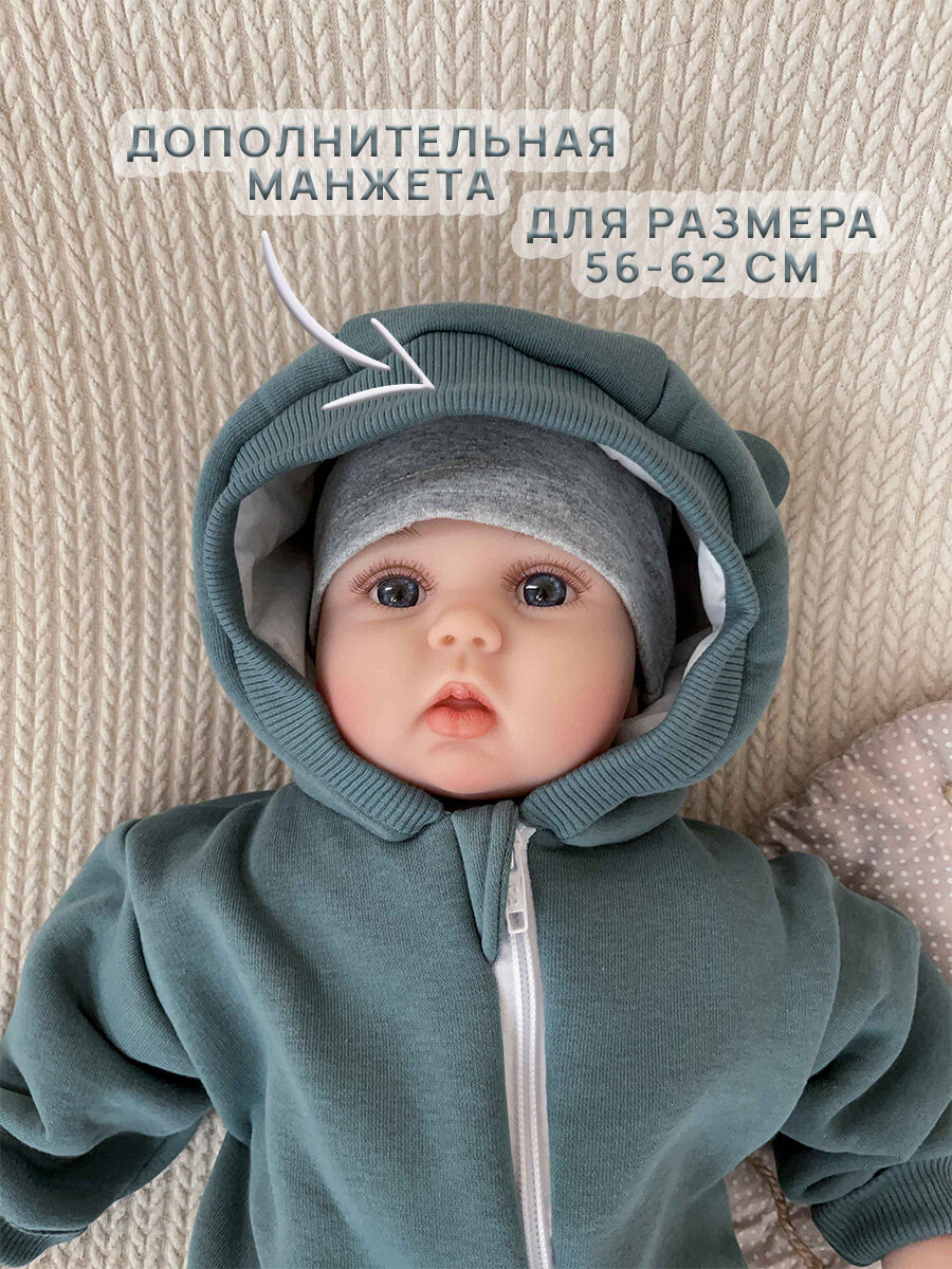 Комбинезон для новорожденных утепленный футер с начесом 62 см зеленый