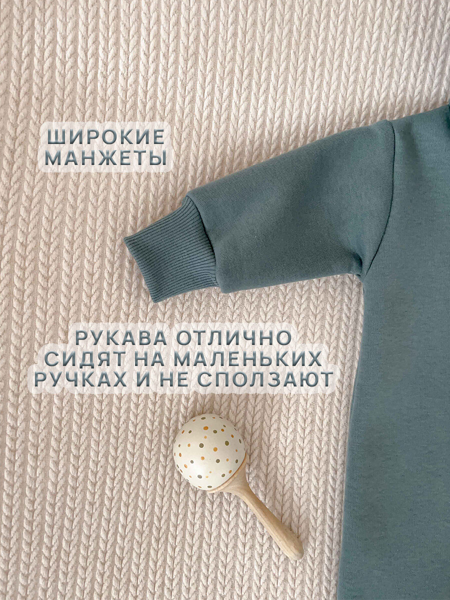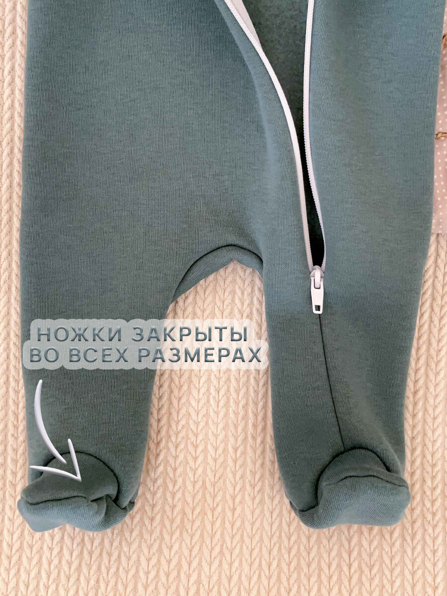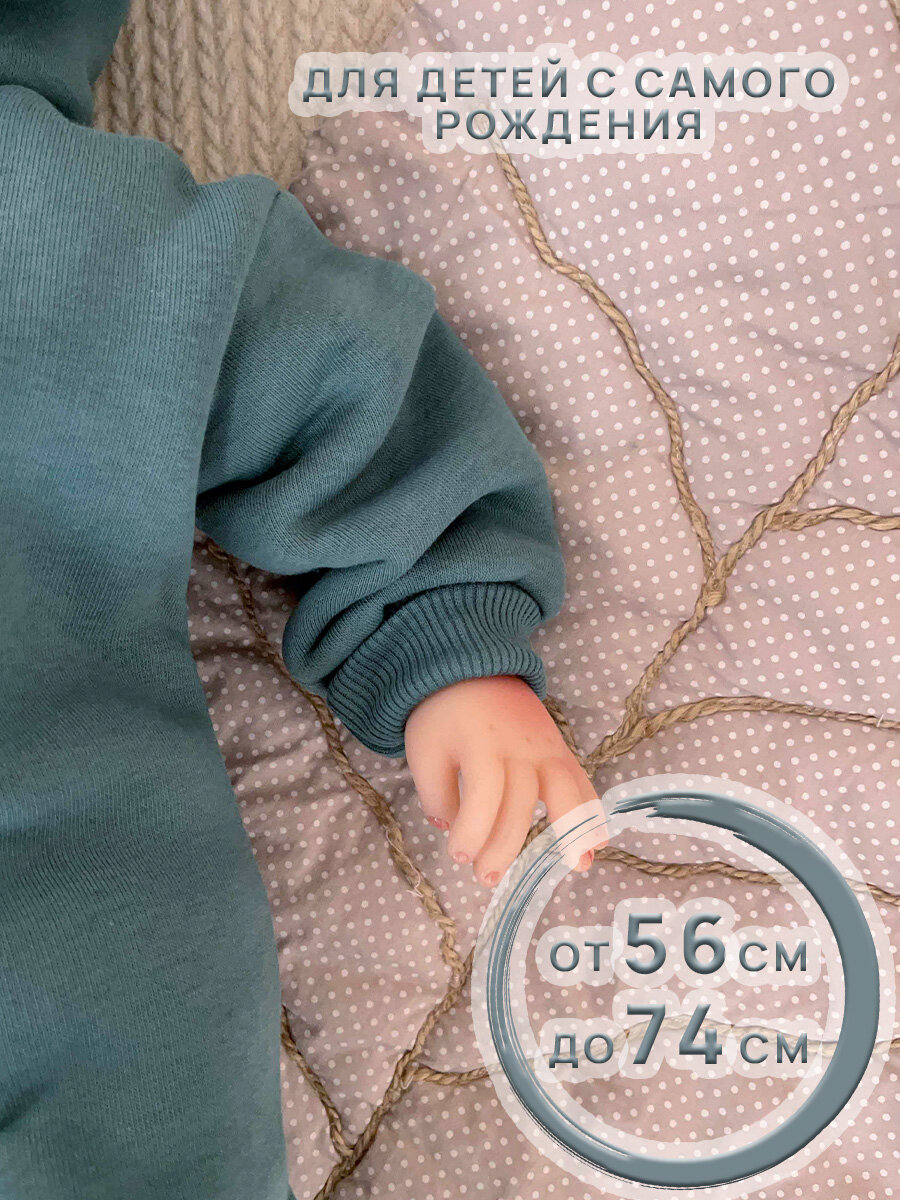 Комбинезон для новорожденных утепленный футер с начесом 68 см зеленый