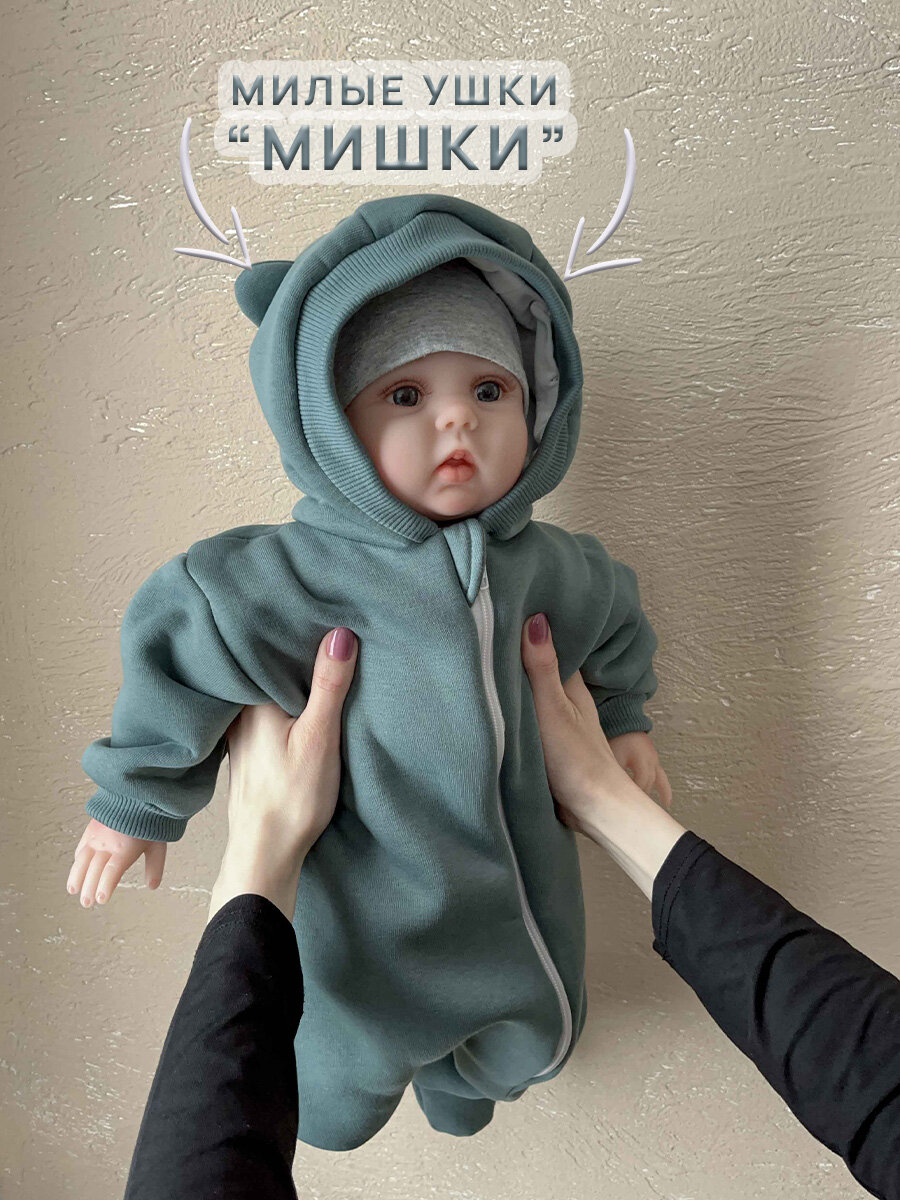 Комбинезон для новорожденных утепленный футер с начесом 74 см зеленый