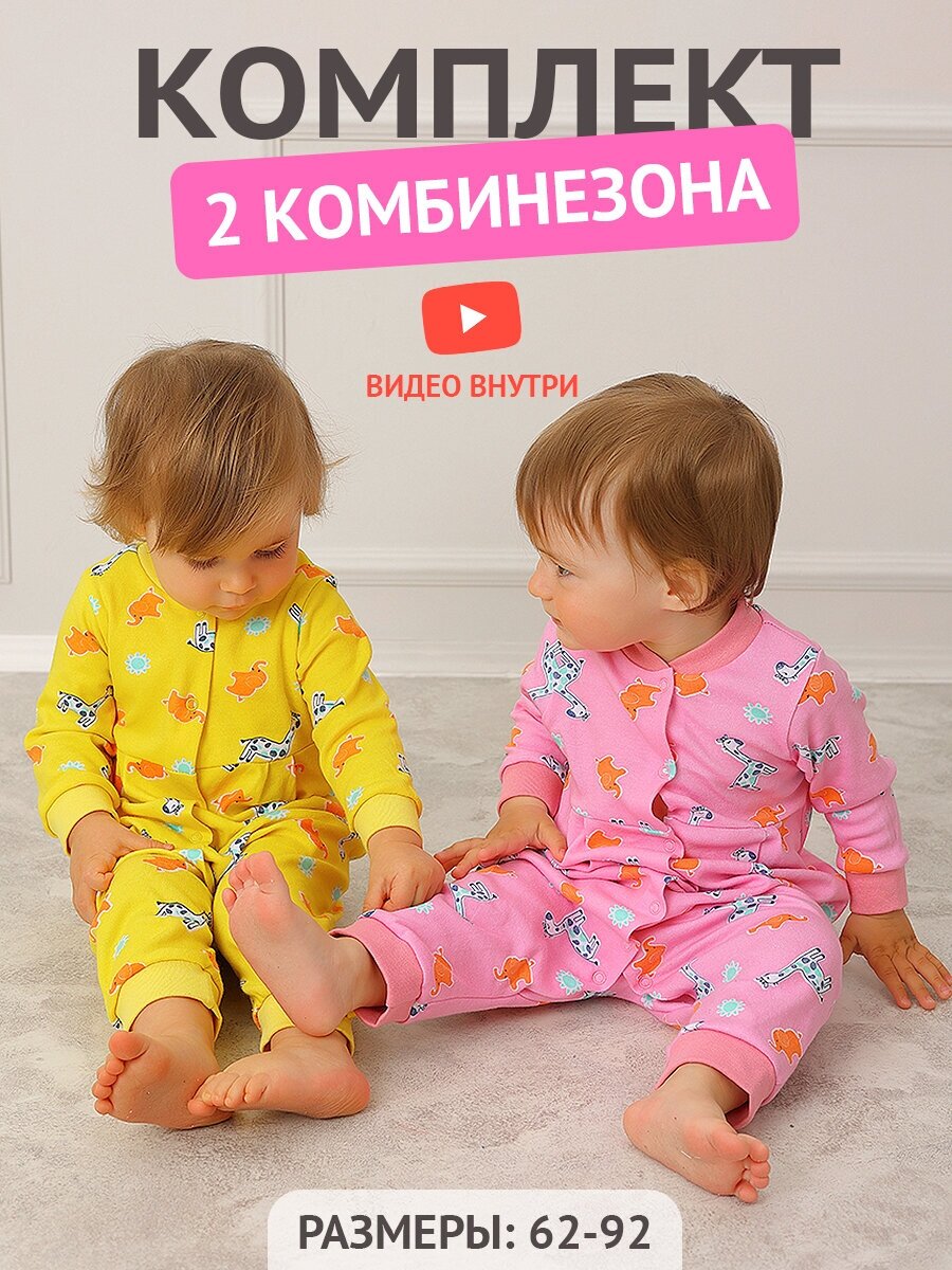 Комбинезон YOULALA, комплект из 2 шт., размер 68, желтый/розовый интересное: