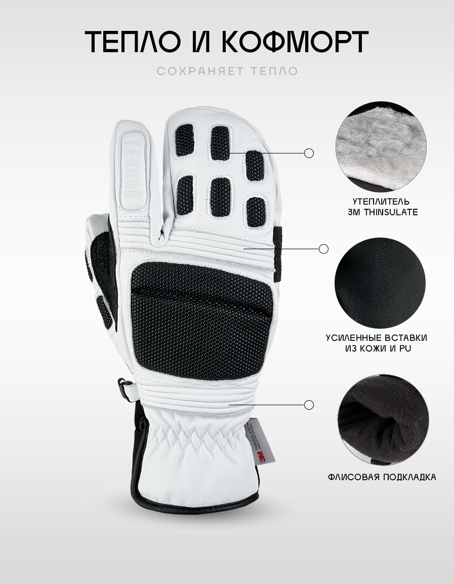 Варежки Terror для мужчин и женщин, размер M, белый