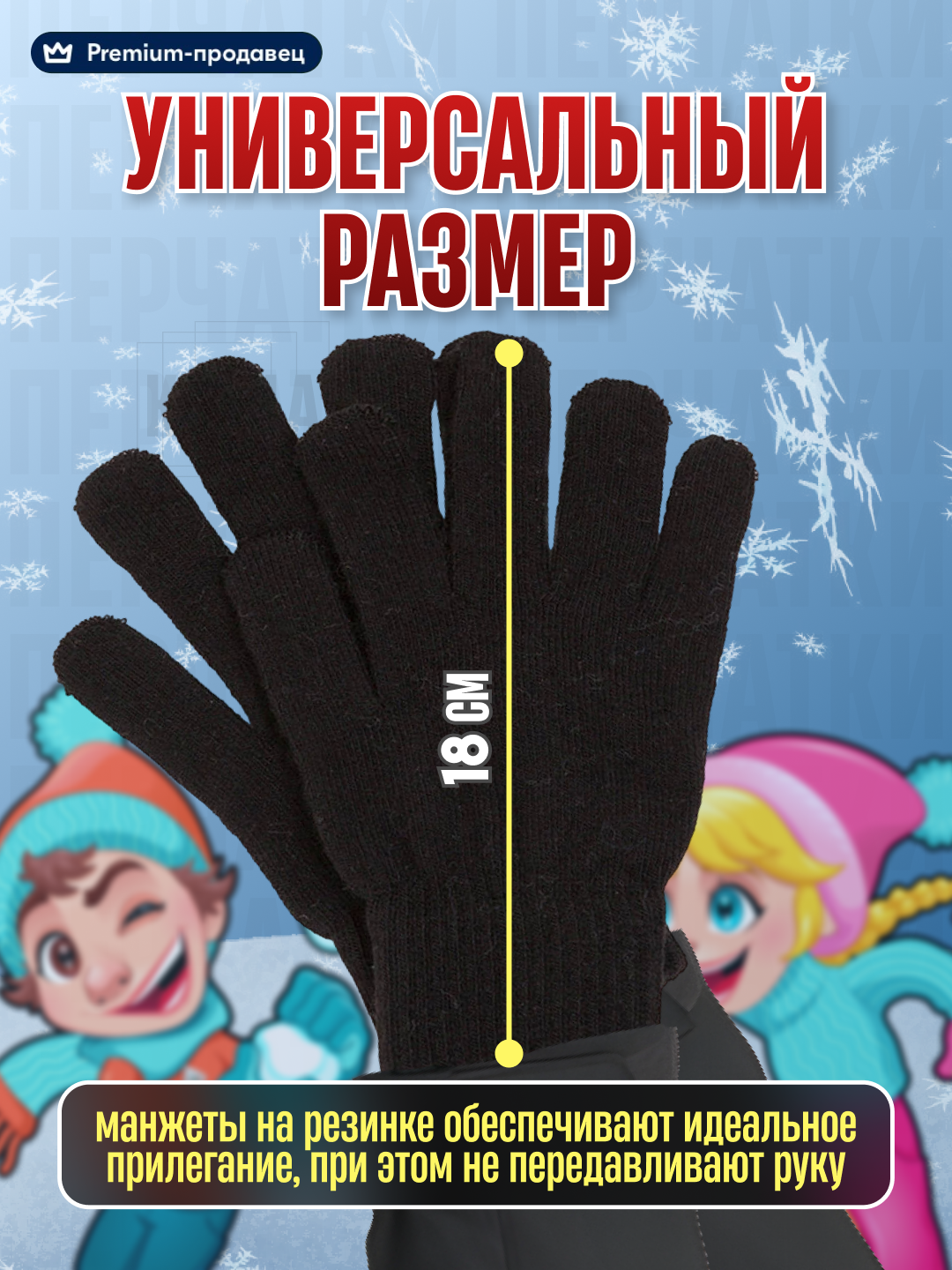 Перчатки KIJUA для детей, размер 18, черный интересное:
