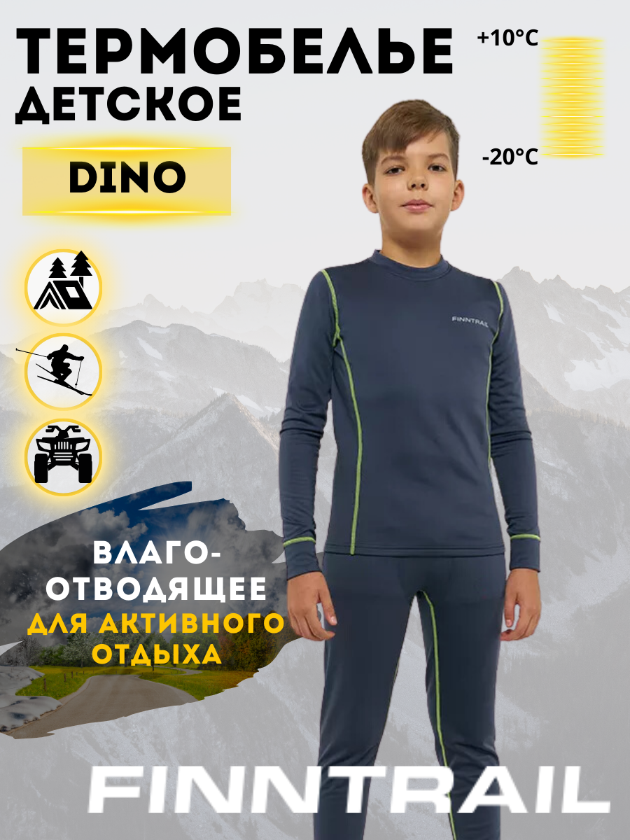 Купить Комплект термобелья Finntrail Dino, размер 146-152, зеленый, желтый, серый