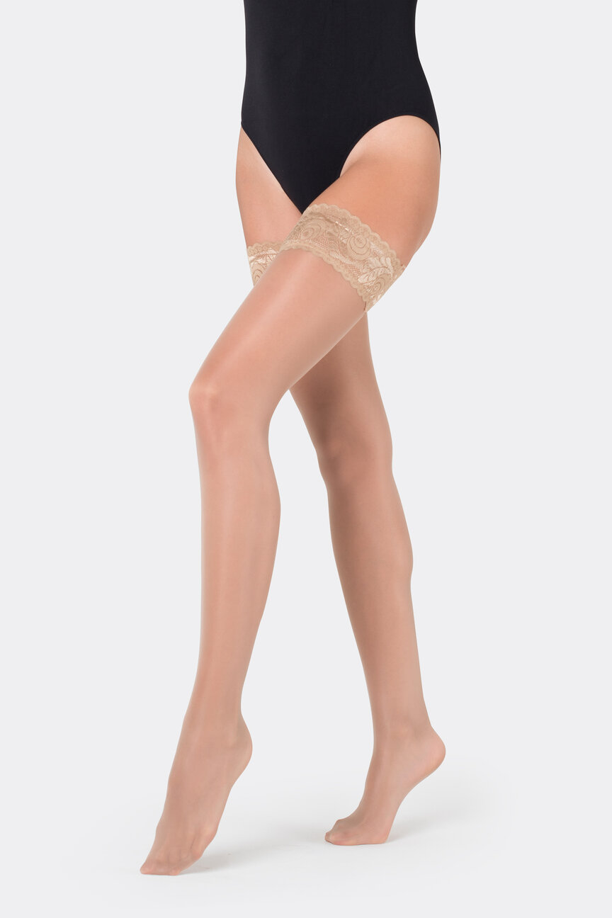 Чулки женские тонкие с кружевом на силиконовой основе MiNiMi Capriccio 20 den, размер 2=S-M, цвет Daino=Загар