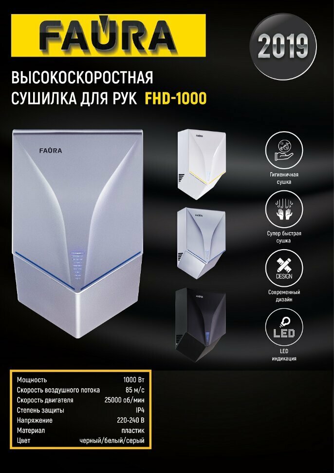 Высокоскоростная сушилка для рук FAURA FHD-1000W
