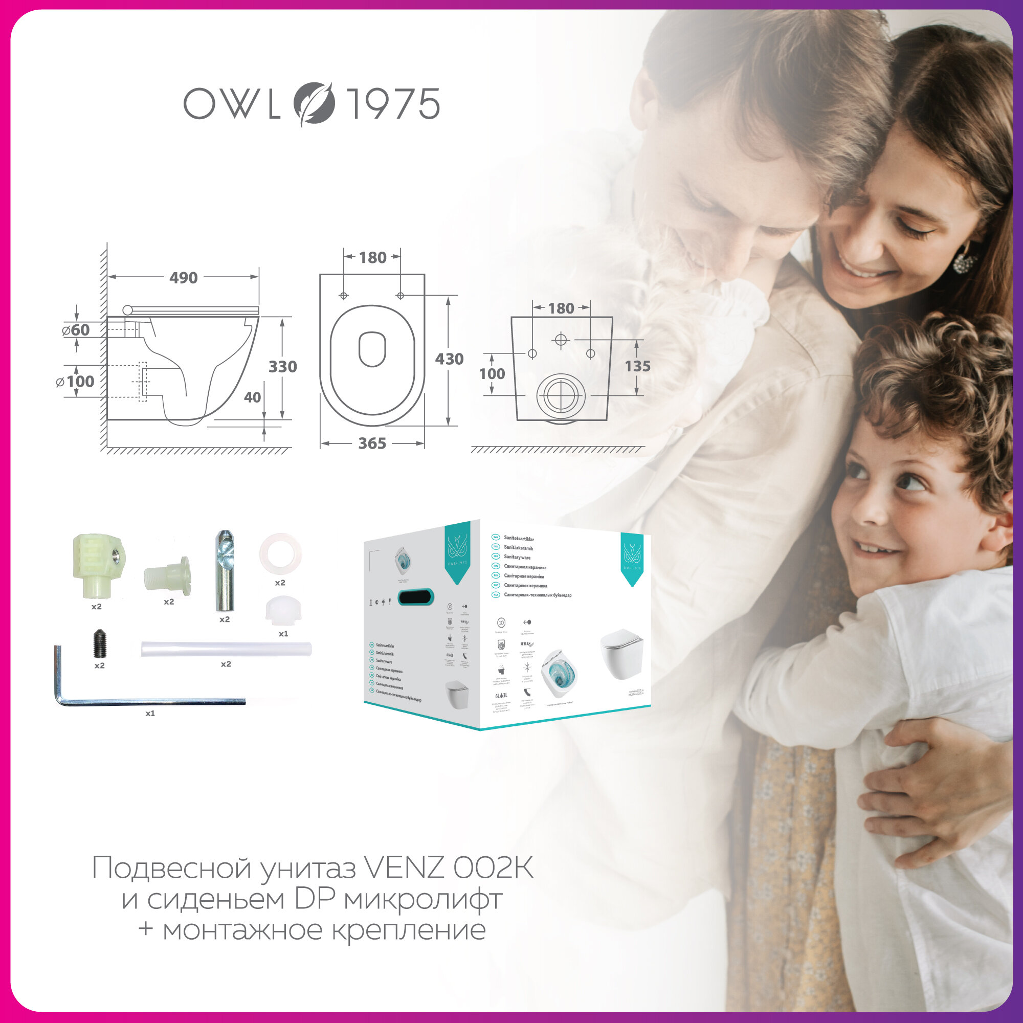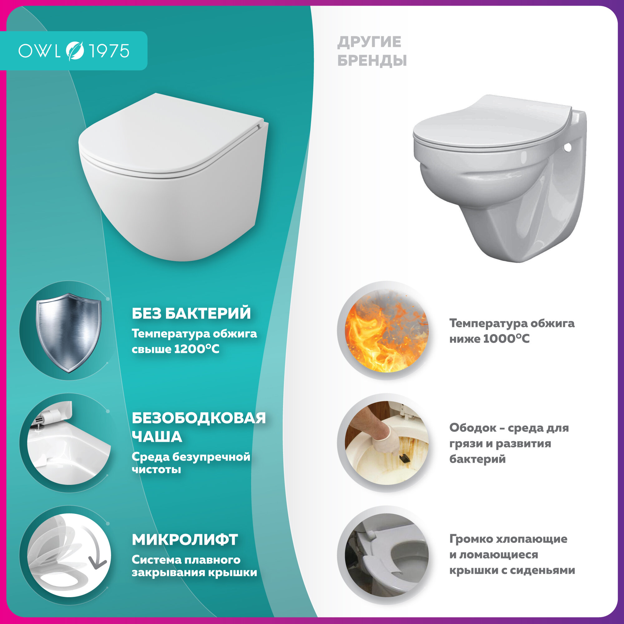 Унитаз Owl 1975 Vind OWLT190302 подвесной с сиденьем Микролифт