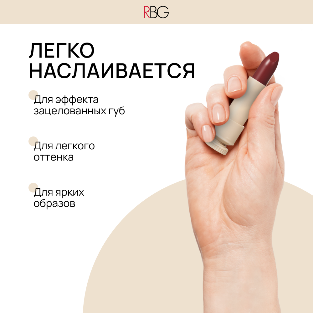 Помада-бальзам RBG "Русский Нюд", тон 04, розово-коричневая, увлажняющий эффект.