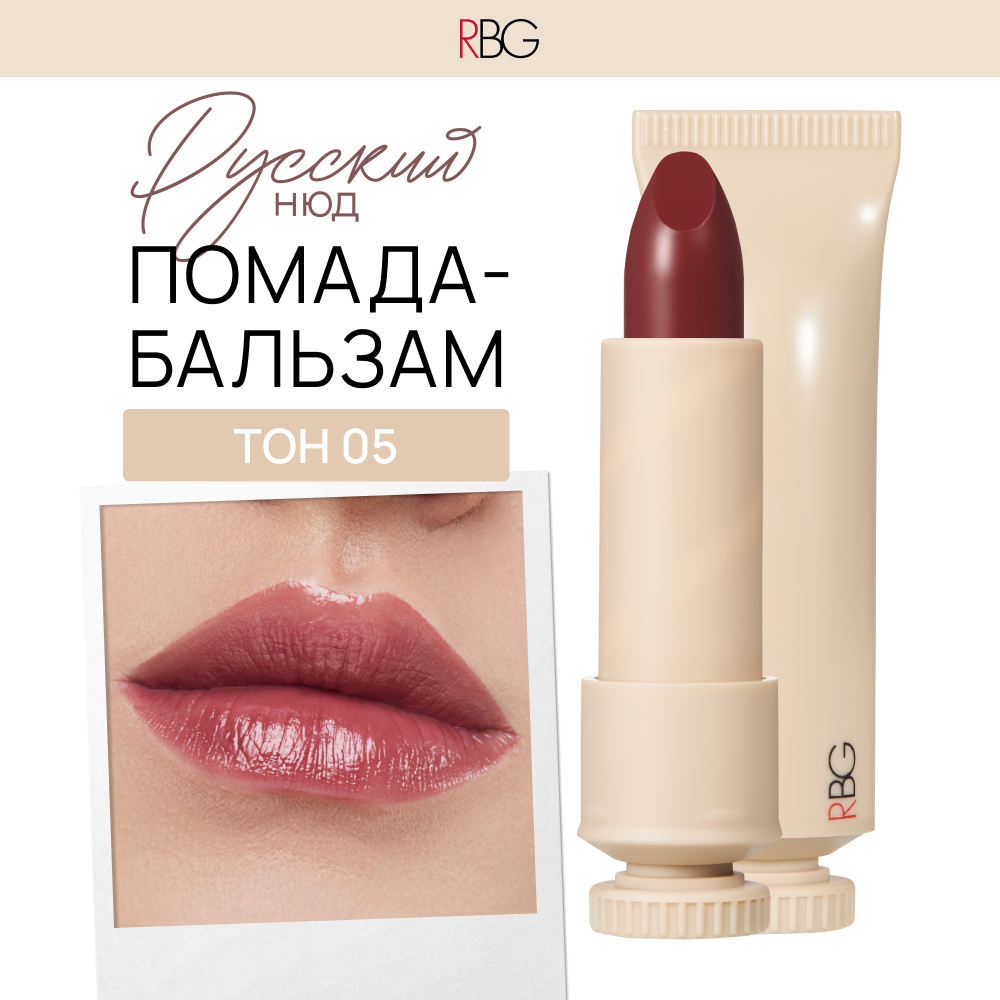 Купить Помада - бальзам для губ RBG " Русский Нюд ", увлажняющая, красно-коричневая, тон 05.