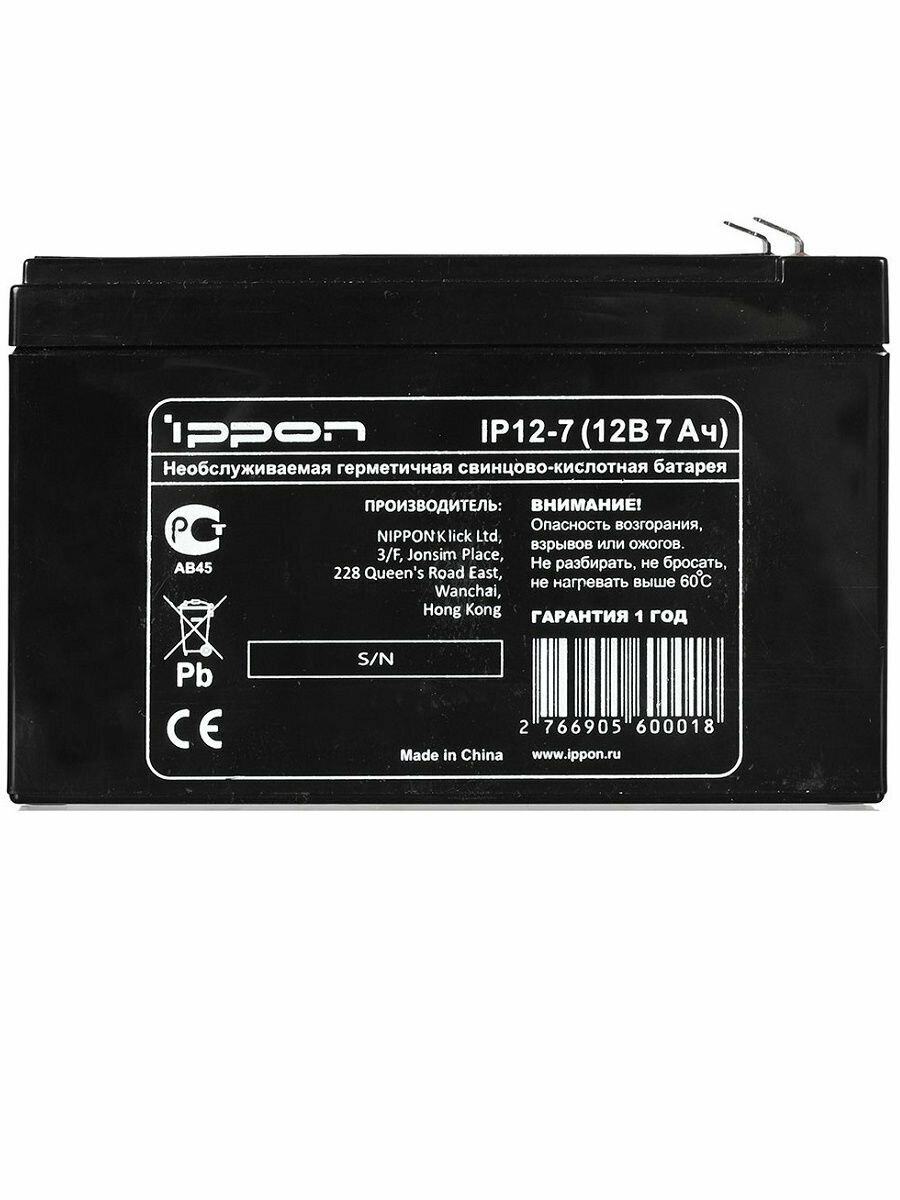 Аккумулятор Ippon IP12-7 12V/7Ah
