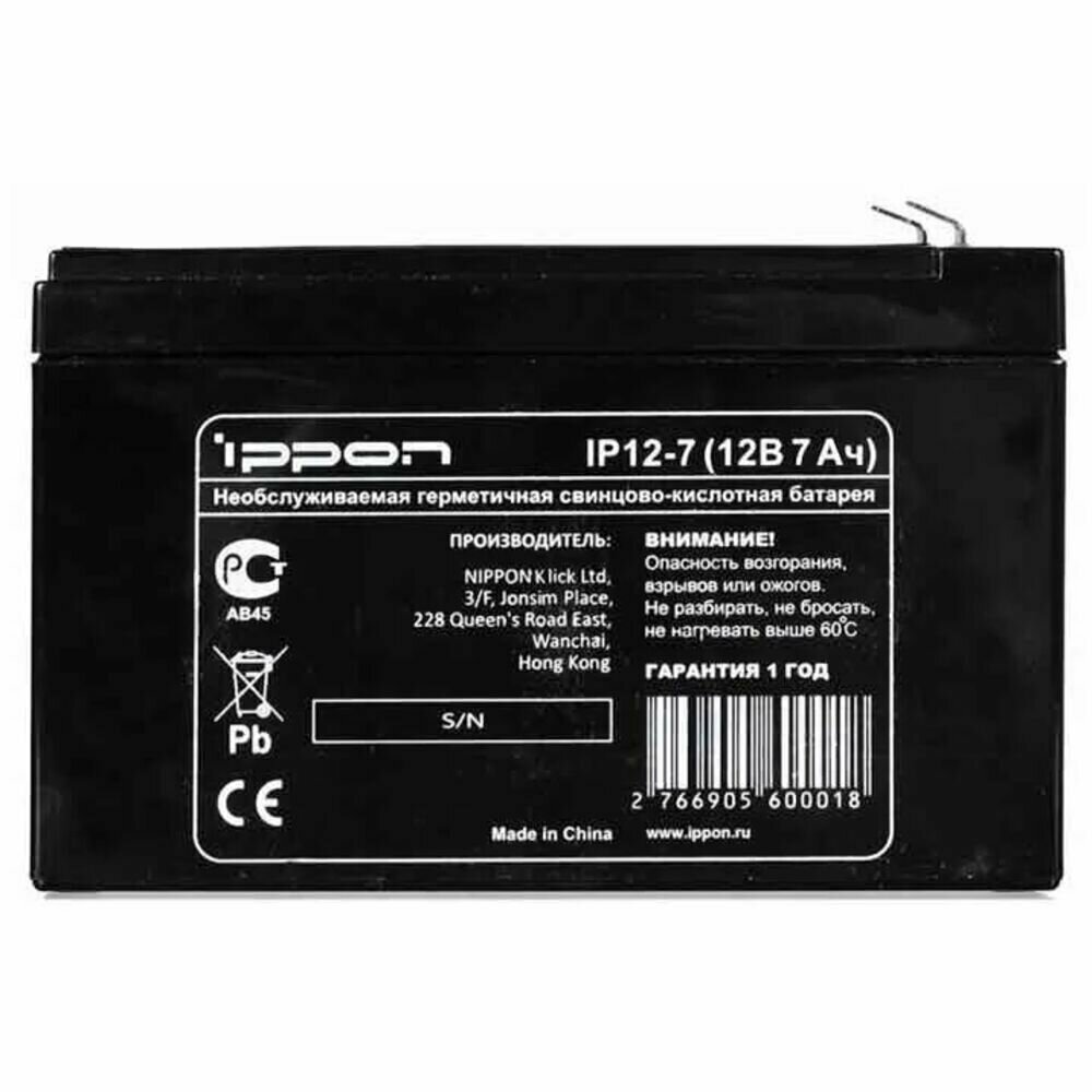 Аккумулятор Ippon IP12-7 12V/7Ah интересное: