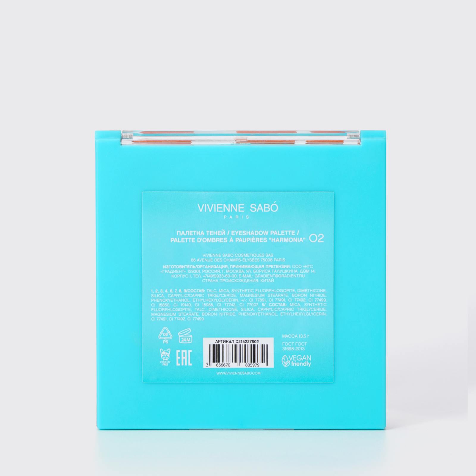 Палетка теней для век Vivienne Sabo HARMONIA, тон 02, 13,5 гр