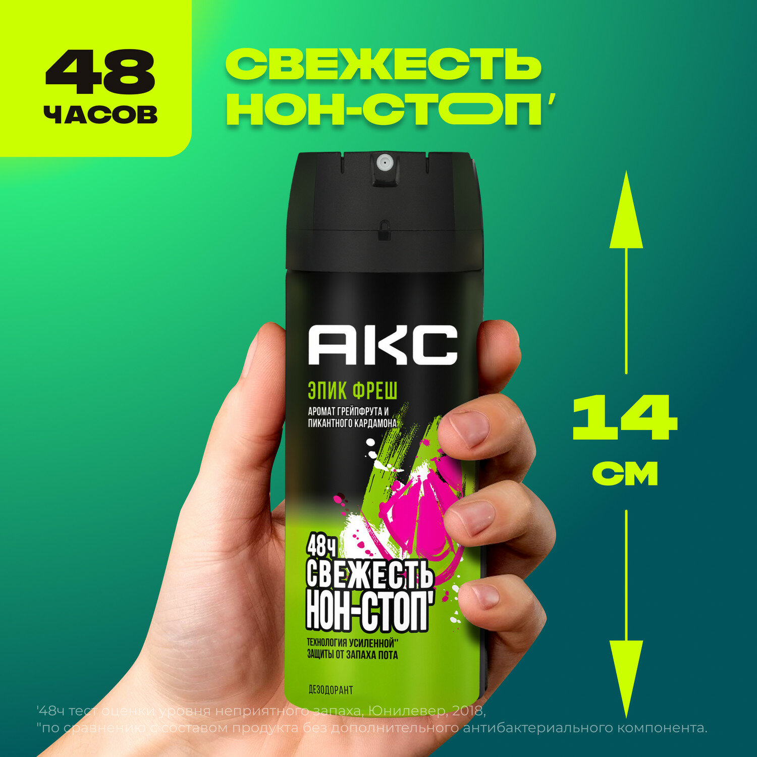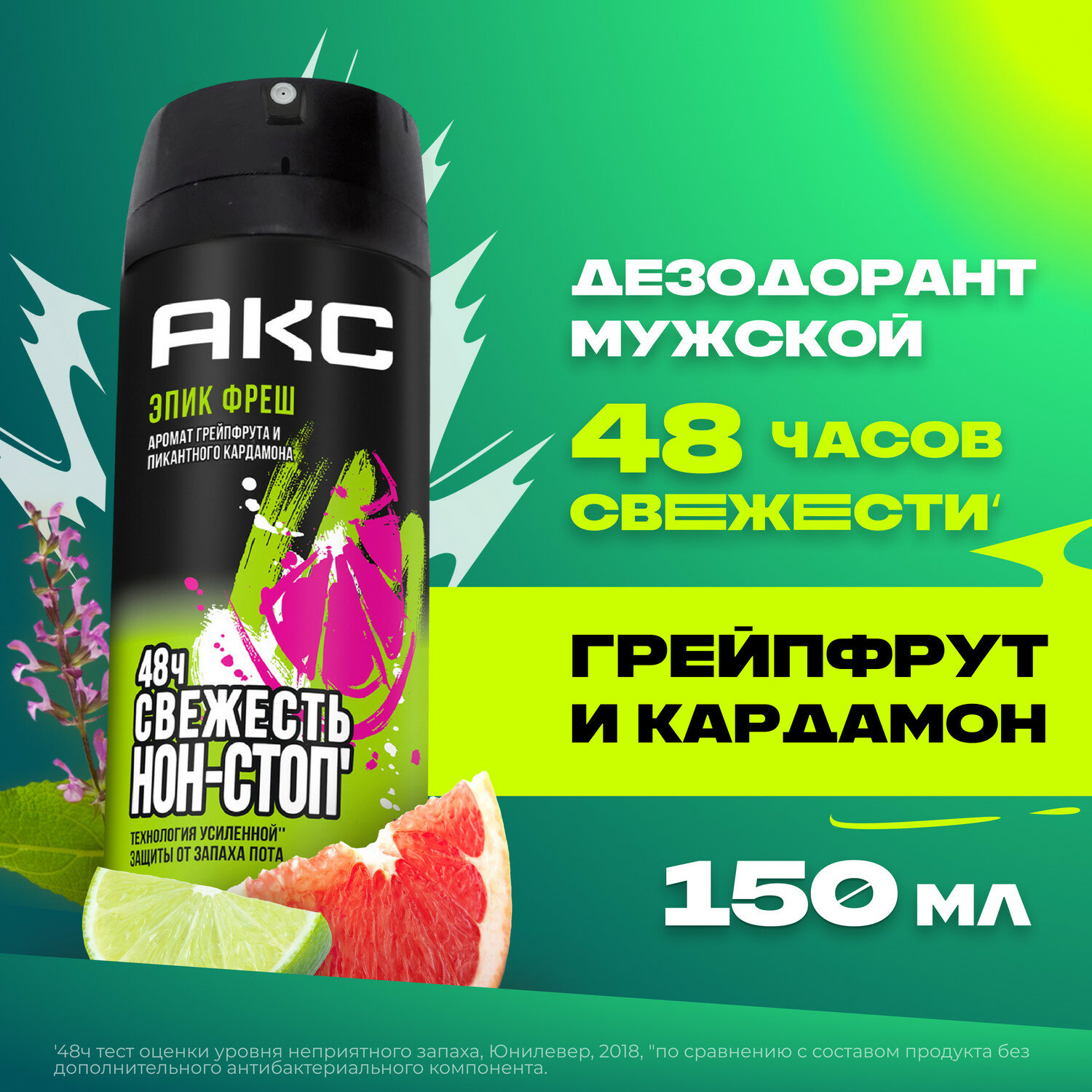 Купить Дезодорант мужской спрей парфюмированный Акс Эпик Фреш защита от запаха пота 48 часов 150 мл