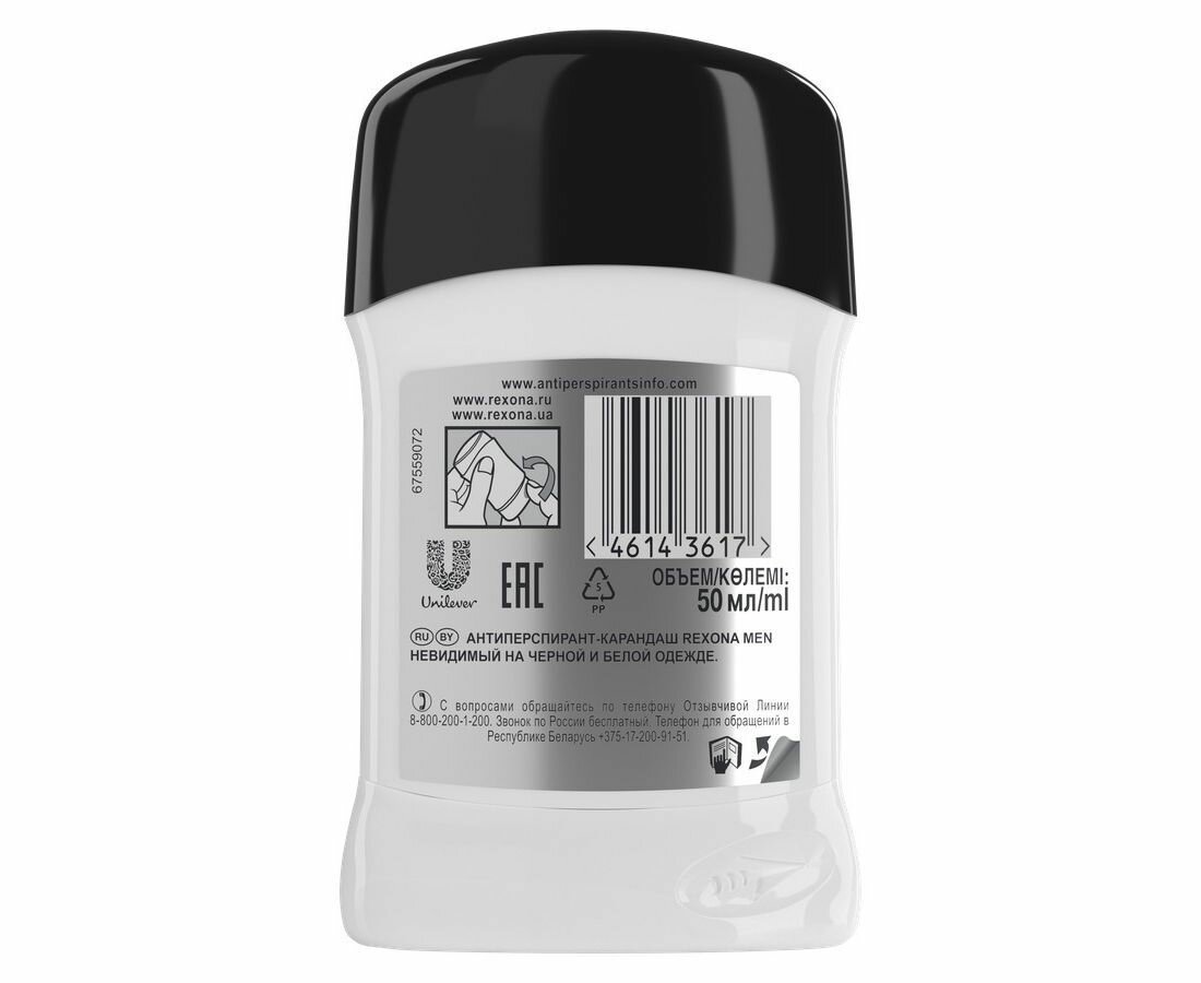 СохранитьДезодорант для тела REXONA 50мл стик мужской Невидимый на черном и белом интересное: