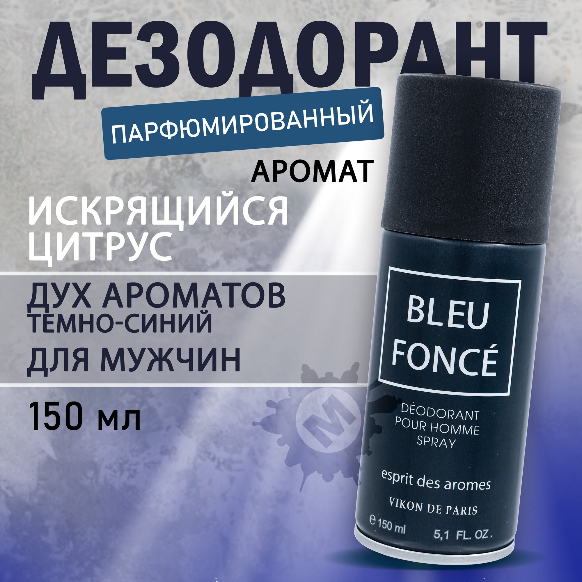 Новая Заря Vikon De Paris Bleu Fonce Дезодорант аэрозольный парфюмированный для мужчин Темно-синий 150 мл