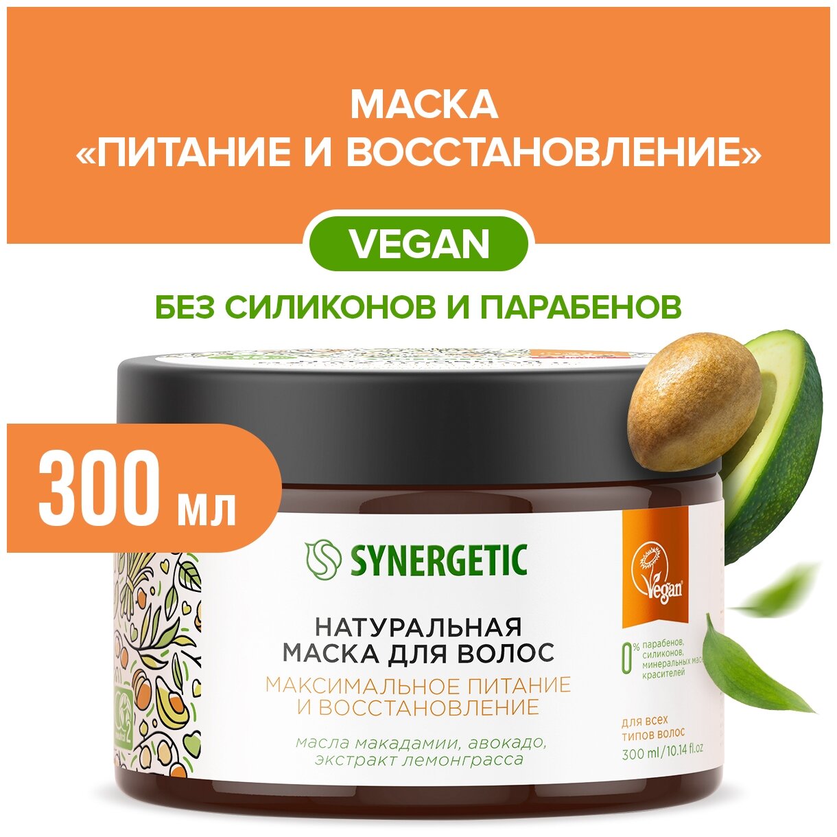 Натуральная маска для волос SYNERGETIC "Максимальное питание и восстановление", 300 мл