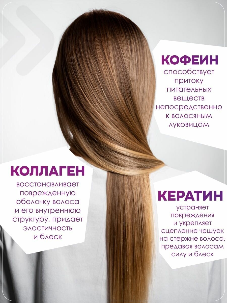 | Активный ингредиент | биотин / витамин A / витамин E / кератин / коллаген / кофеин / ниацинамид / пантенол |