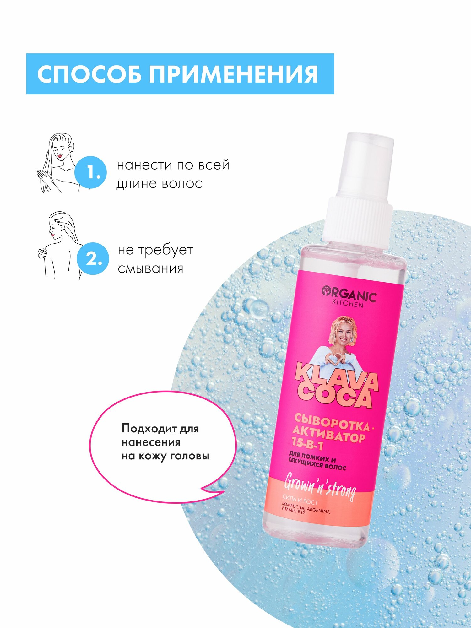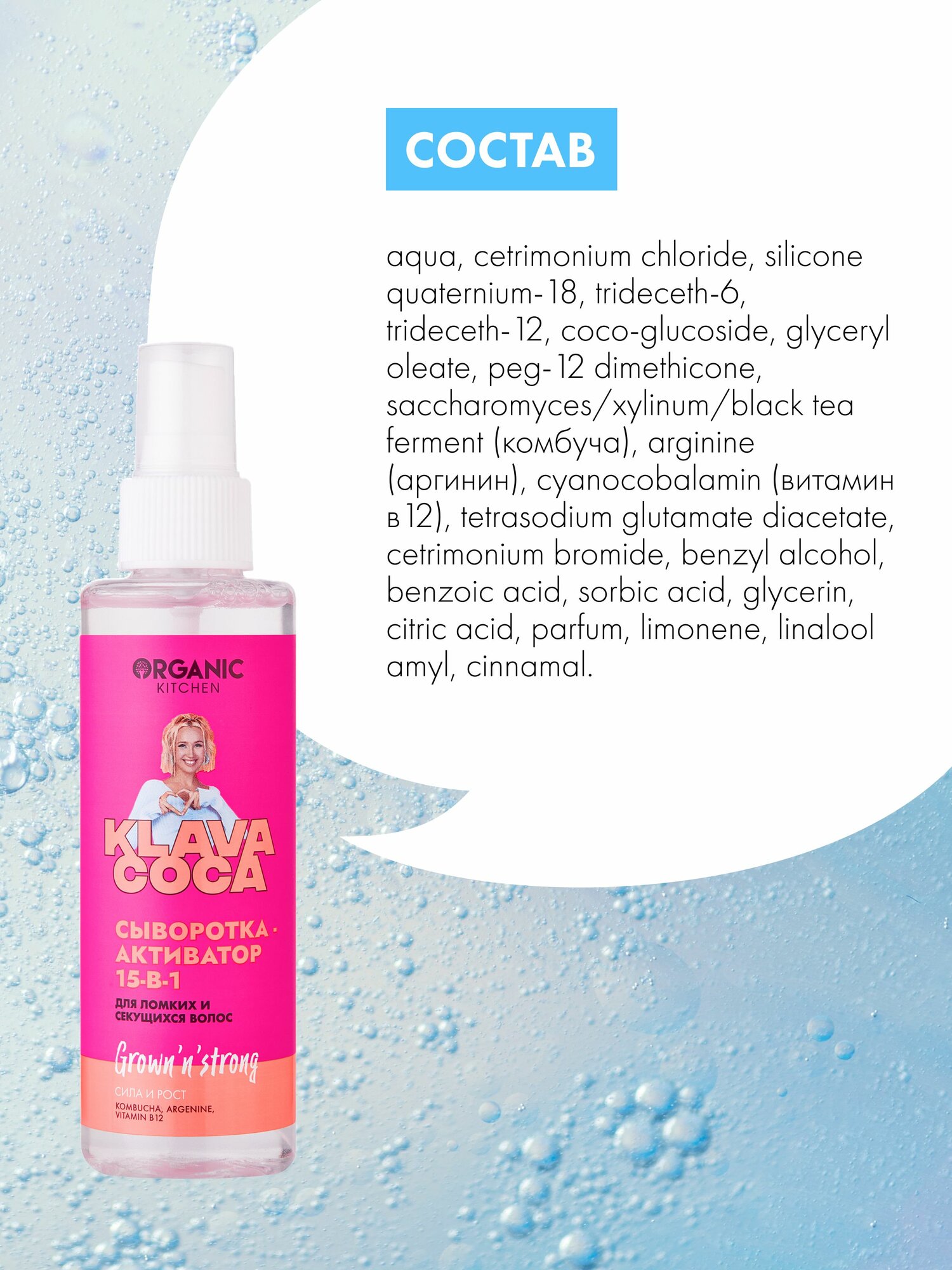 Сыворотка-активатор 15-в-1 Organic Kitchen Klava Coca (Клава Кока) для ломких и секущихся волос Grown'n'Strong сила и рост, 150 мл интересное: