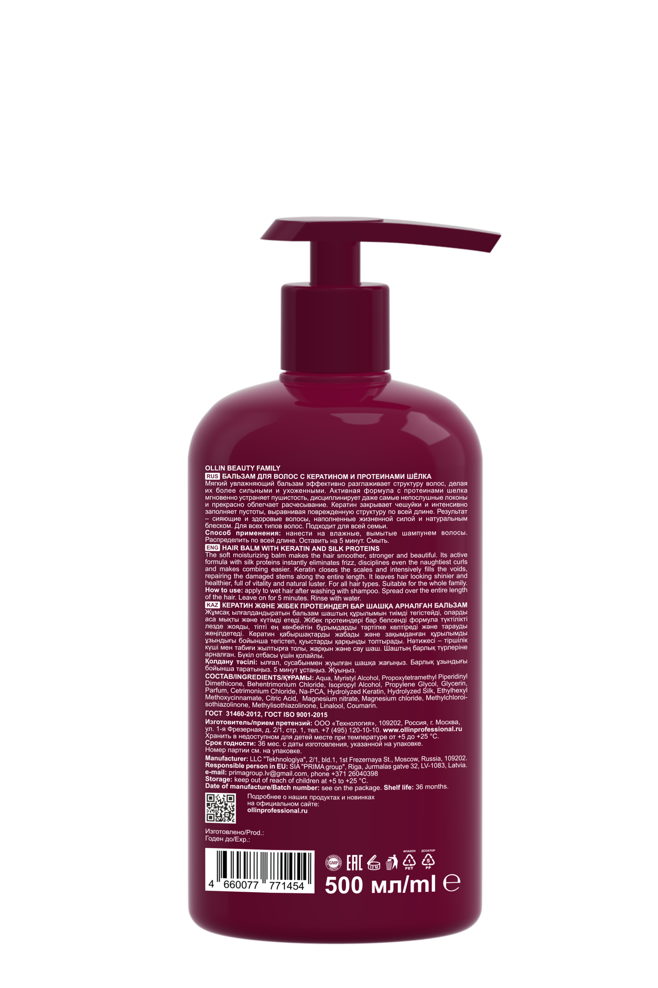 Бальзам для волос с кератином и протеинами шёлка OLLIN BEAUTY FAMILY 500 мл