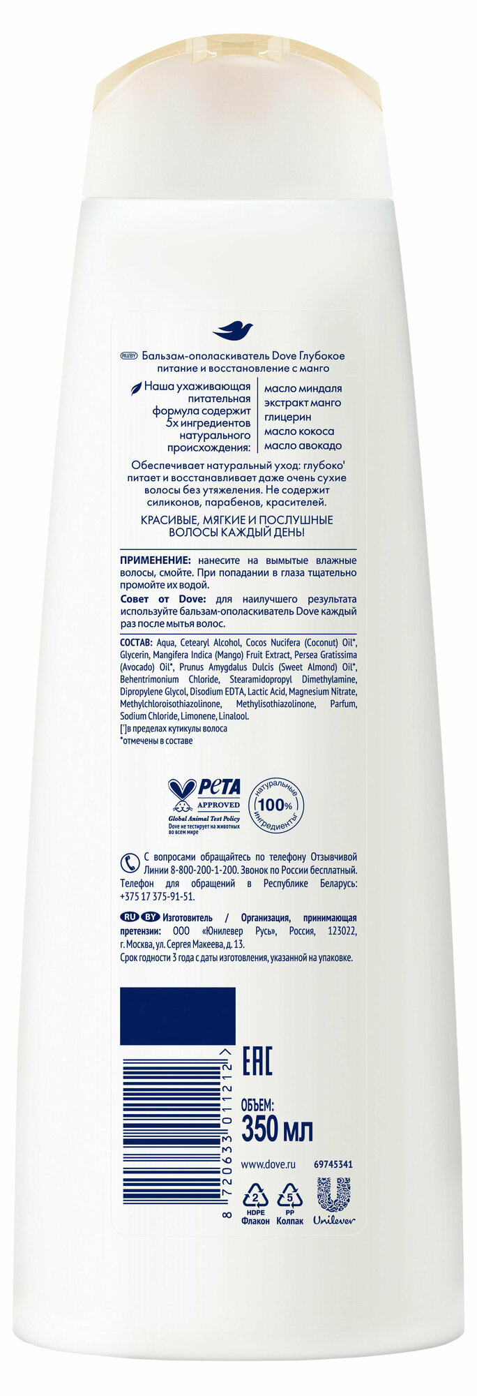 Dove бальзам-ополаскиватель глубокое питание и восстановление с ароматом Манго 350 мл