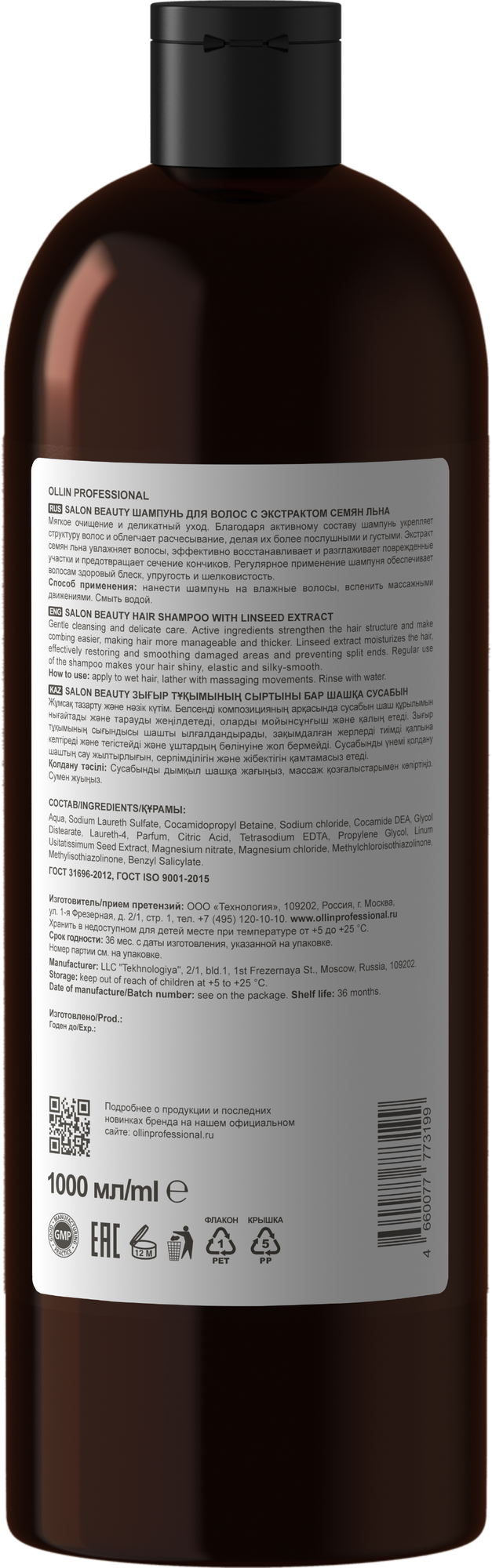 Шампунь OLLIN SALON BEAUTY, с экстрактом семян льна, для всех типов волос, 1000мл
