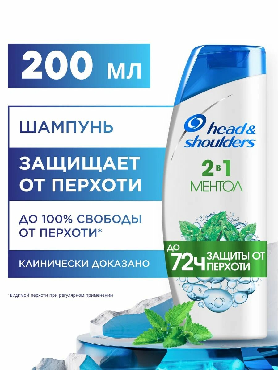 HEAD & SHOULDERS Шампунь и бальзам - ополаскиватель для волос от перхоти мужской женский Ментол 2в1 200мл интересное: