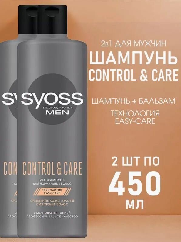 Купить Сьёсс Шампунь и бальзам мужской 2в1 Control & Care для нормальных волос, 450 мл х 2 шт