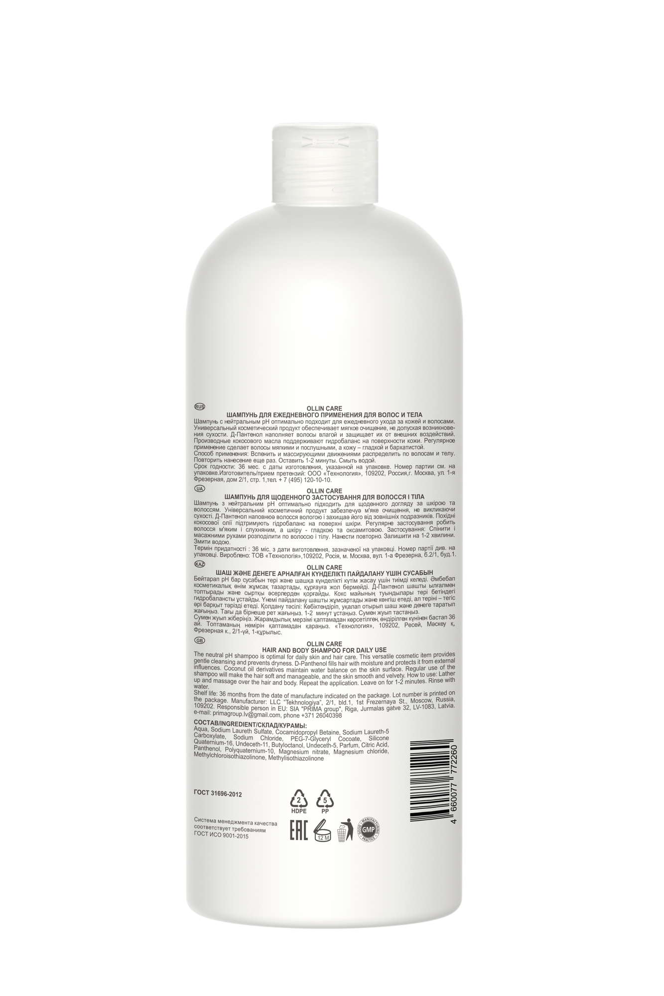 Купить Ollin, Шампунь для ежедневного применения для волос и тела Care, 1000 мл