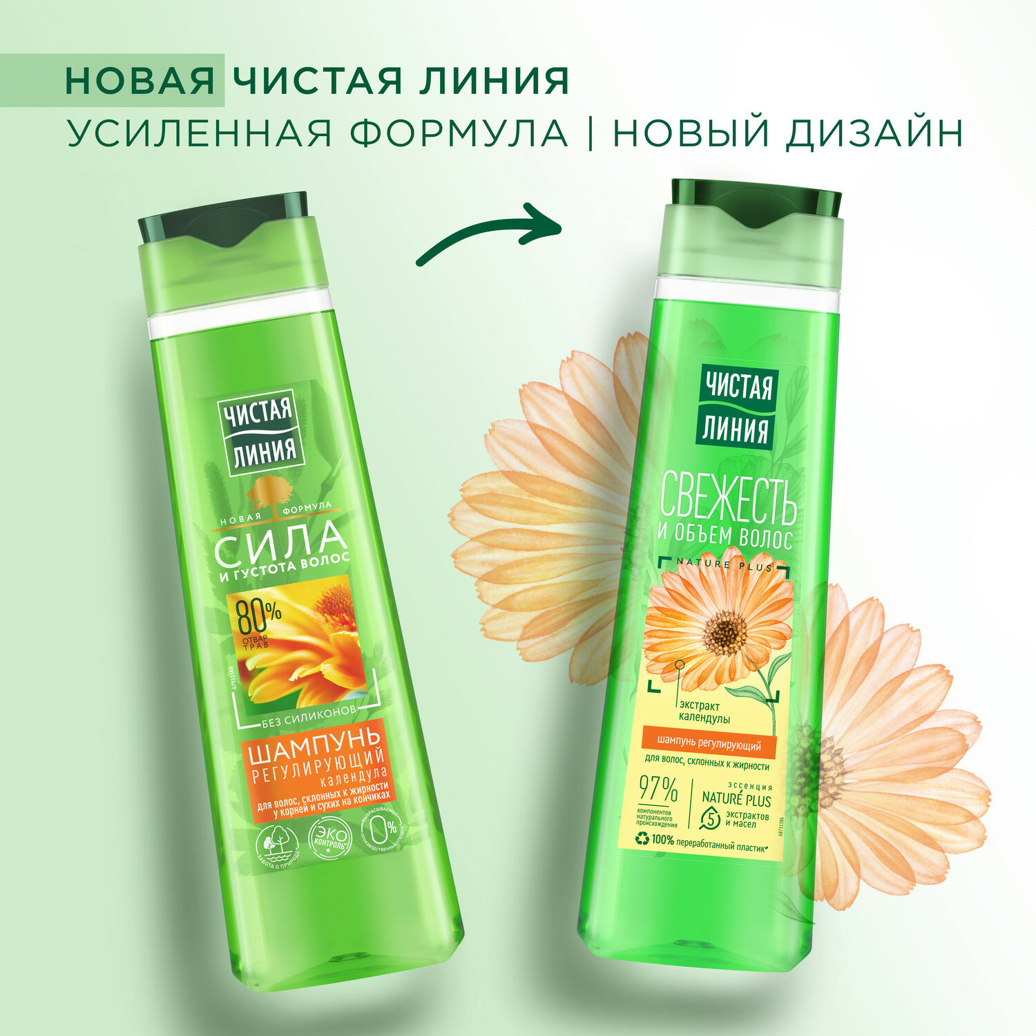 Чистая Линия шампунь для волос склонных к жирности Календула 400 мл