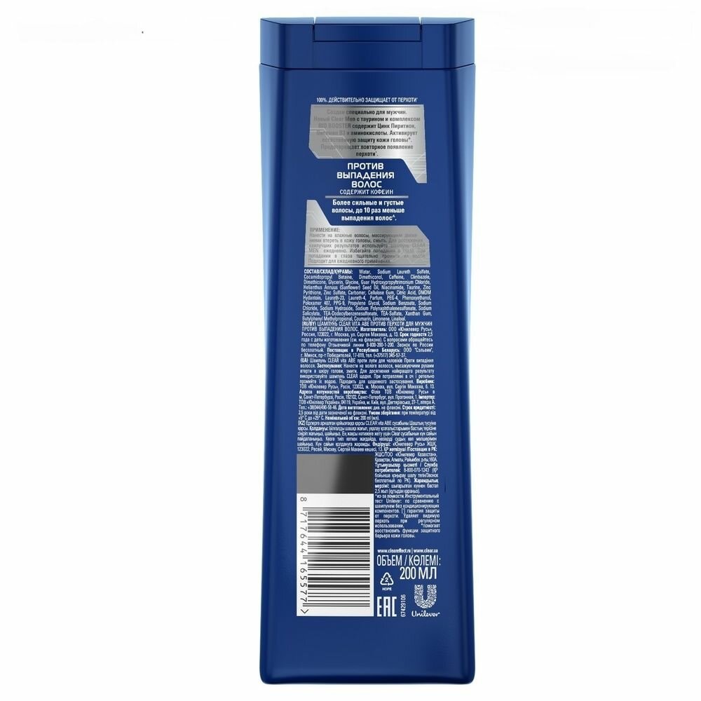 Clear шампунь против перхоти для мужчин Против выпадения волос 200 мл