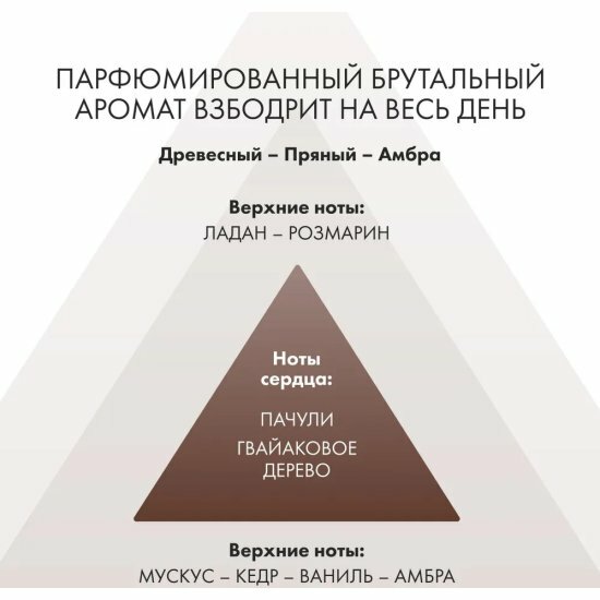 | Дополнительная информация | Парфюмированный шампунь-гель 3 в 1 интенсивно очищает кожу головы, волосы, бороду и тело. Дарит ощущение бодрости и свежести на целый день, даже в условиях городской жизни. Уникальная формула с брутальным ароматом поддерживает естественный уровень увлажнения кожи. Подходит для ежедневного использования. |